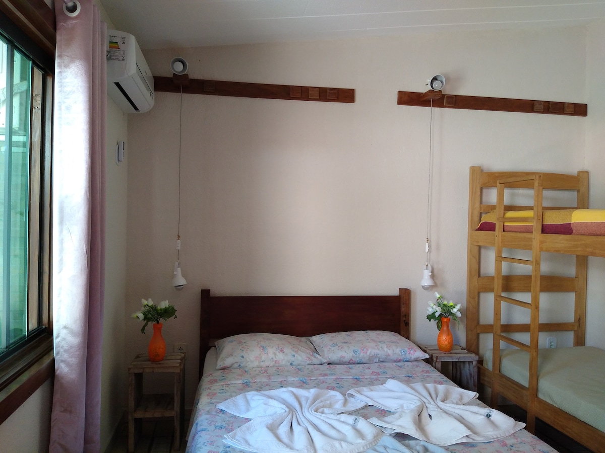 Spavaća soba sa spojenim kupatilom. Naš apartman nudi privatni prostor za najviše 3 osobe sa Wi-Fi mrežom, TV-om od 39inča sa pristupom Netflix-u/Amazonu, bračnim krevetom, krevetom za jednu osobu, mini barom i plafonskim ventilatorom Pješice je: 2 minute od Praia dos Anjos ( odakle turistički brodovi idu na najljepše plaže u Brazilu) 5 minuta od autobuske stanice 5 minuta od pristupa Praia do Forno ( staza + 15 min) 16 minuta od Praia Grande U blizini pekara, supermarketa, restorana, barova i apoteka.