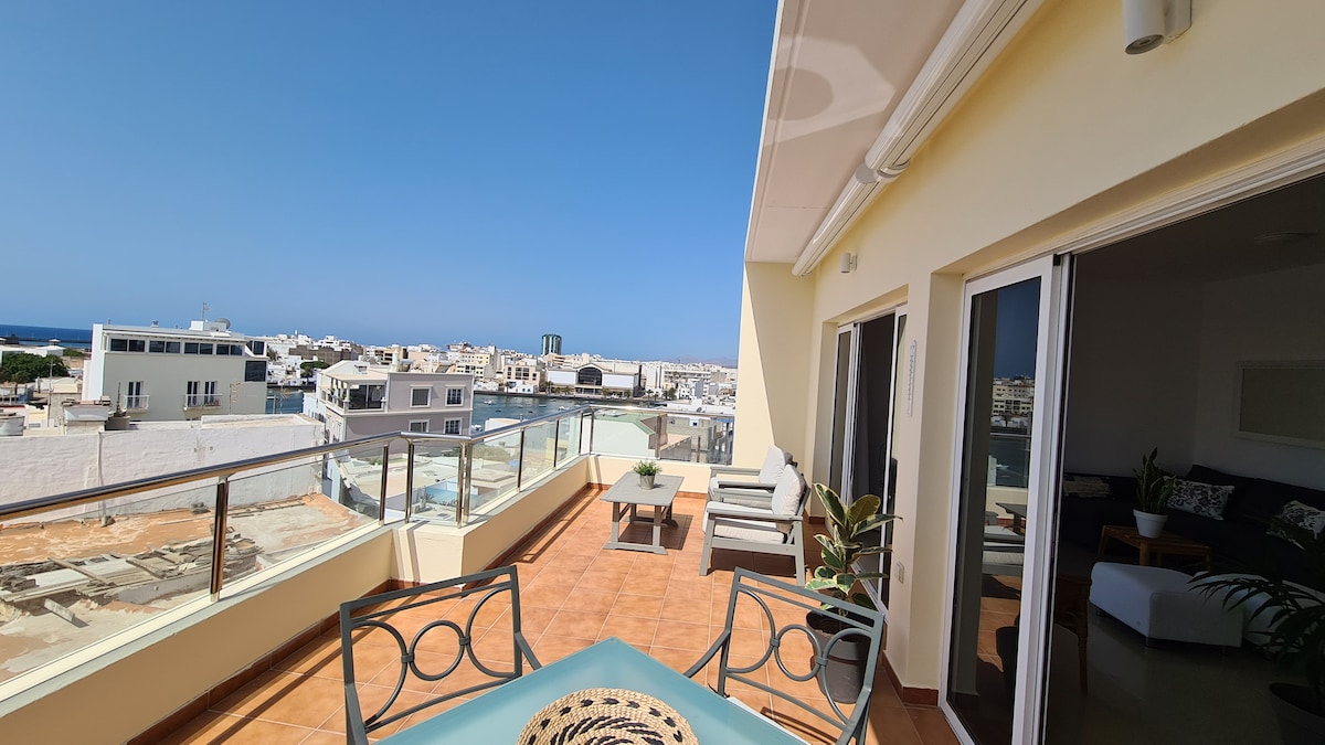 Penthaus u centru Arrecifea Vaš prostor za život u srcu glavnog grada Lanzarotea. Vrlo napuštena lokacija, samo tri koraka udaljena od romantične luke Charco de San Gines, sa brojnim barovima i restoranima.