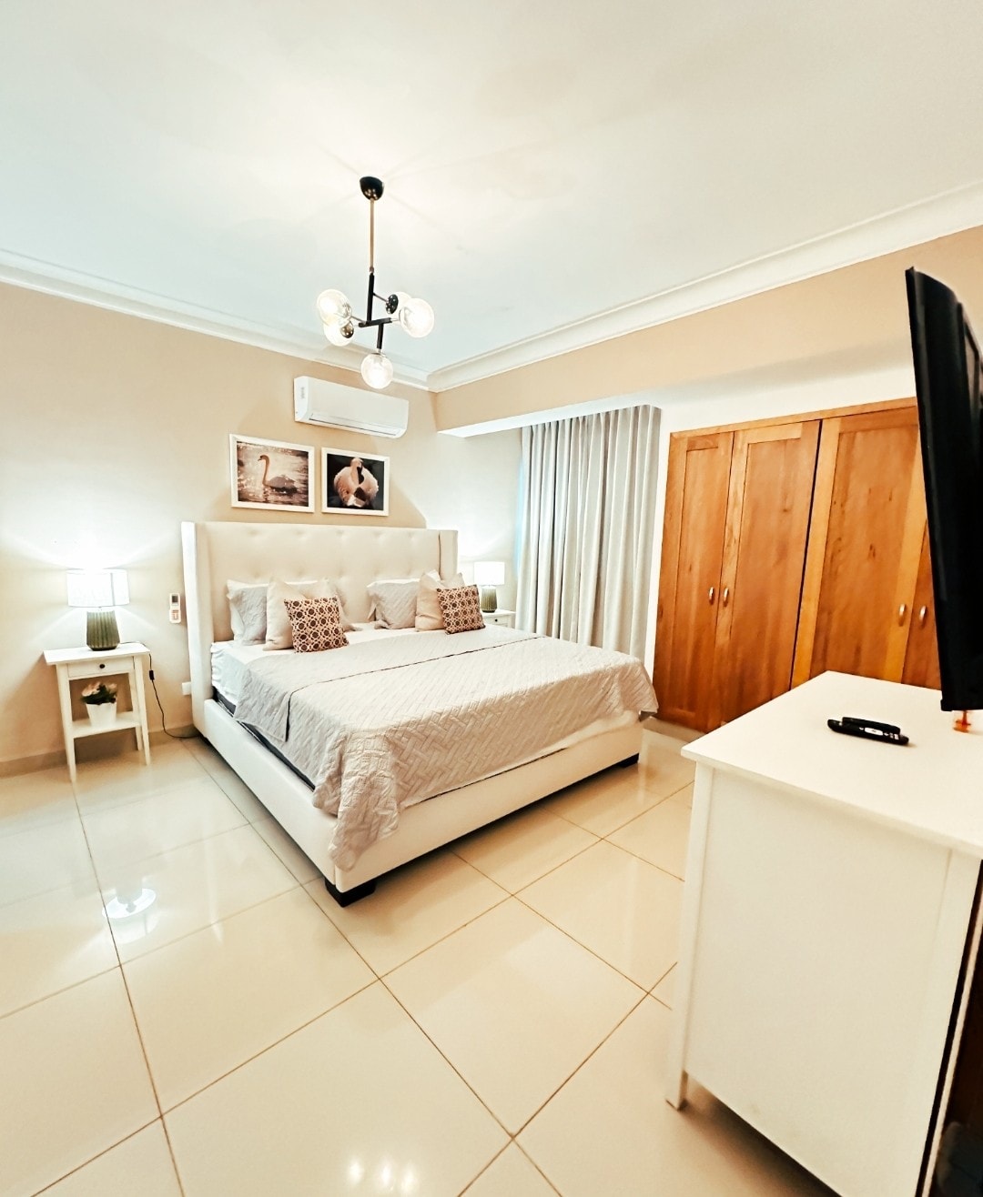 Disfruta una estadía de lujo en el corazón de Piantini, una de las zonas más exclusivas de Santo Domingo. Ubicado a solo pasos de Blue Mall y Ágora Mall, rodeado de los mejores restaurantes, tiendas y vida urbana. Ideal para viajes de negocios, turismo o una escapada de descanso. Apartamento completo, moderno y totalmente equipado y WiFi de alta velocidad Estacionamiento privado gratuito Área social con jacuzzi en el rooftop, gimnasio y salón de juegos. Un espacio cómodo, elegante y tranquilo.