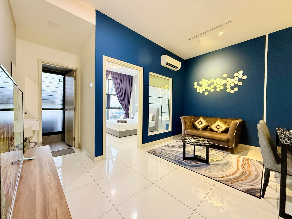 Serene Escape Living: Wooden shiplap design blend effortlessly, harmonious ambiance. It connects you to a plethora of foreign experiences, premium shopping outlets, newest restaurants, exciting nightlife and key locations such as the Malaysian International Trade and Exhibition Center (MITEC) the largest exhibition centre in South East Asia, perfect for both business and convention travellers.