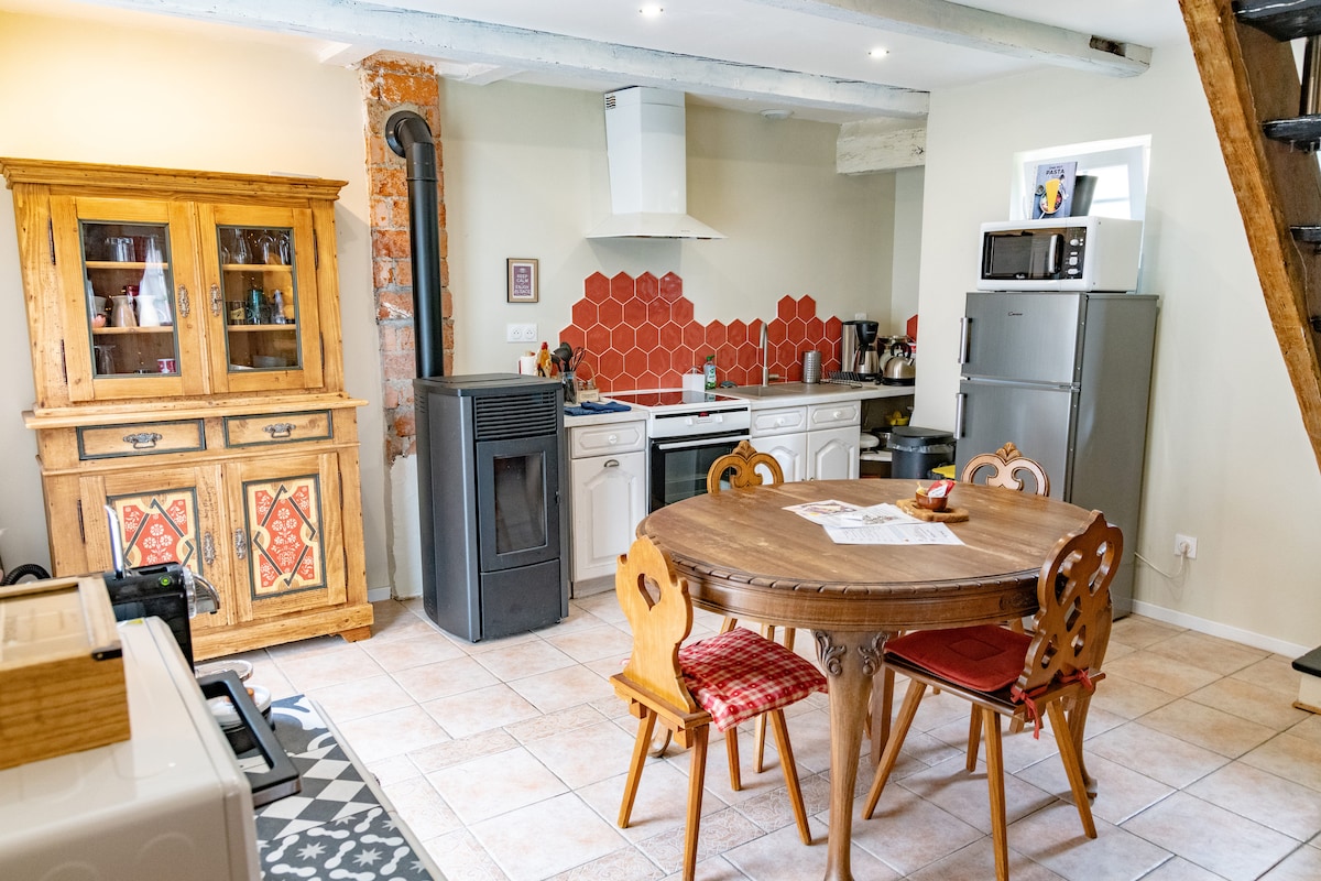 Rezervacija: minimalno 2 noćenja. Potpuno renovirana alzaška kuća od 80 m2 za 5 ljudi. Nalazi se u centru Alsace u tipičnom malom selu: U centru Sélestat/ Colmar/ Strasbourg/EuropaPark / Route des Vins U prizemlju se nalazi potpuno opremljena kuhinja i dnevni boravak. Sofa sa pravim dušekom Na spratu je spavaća soba U POTKROVLJU sa bračnim krevetom 160 x 200 i jednim krevetom (90 cm). Na raspolaganju su i privatna terasa+SPA+SAUNA. Najmanje 2 noćenja!