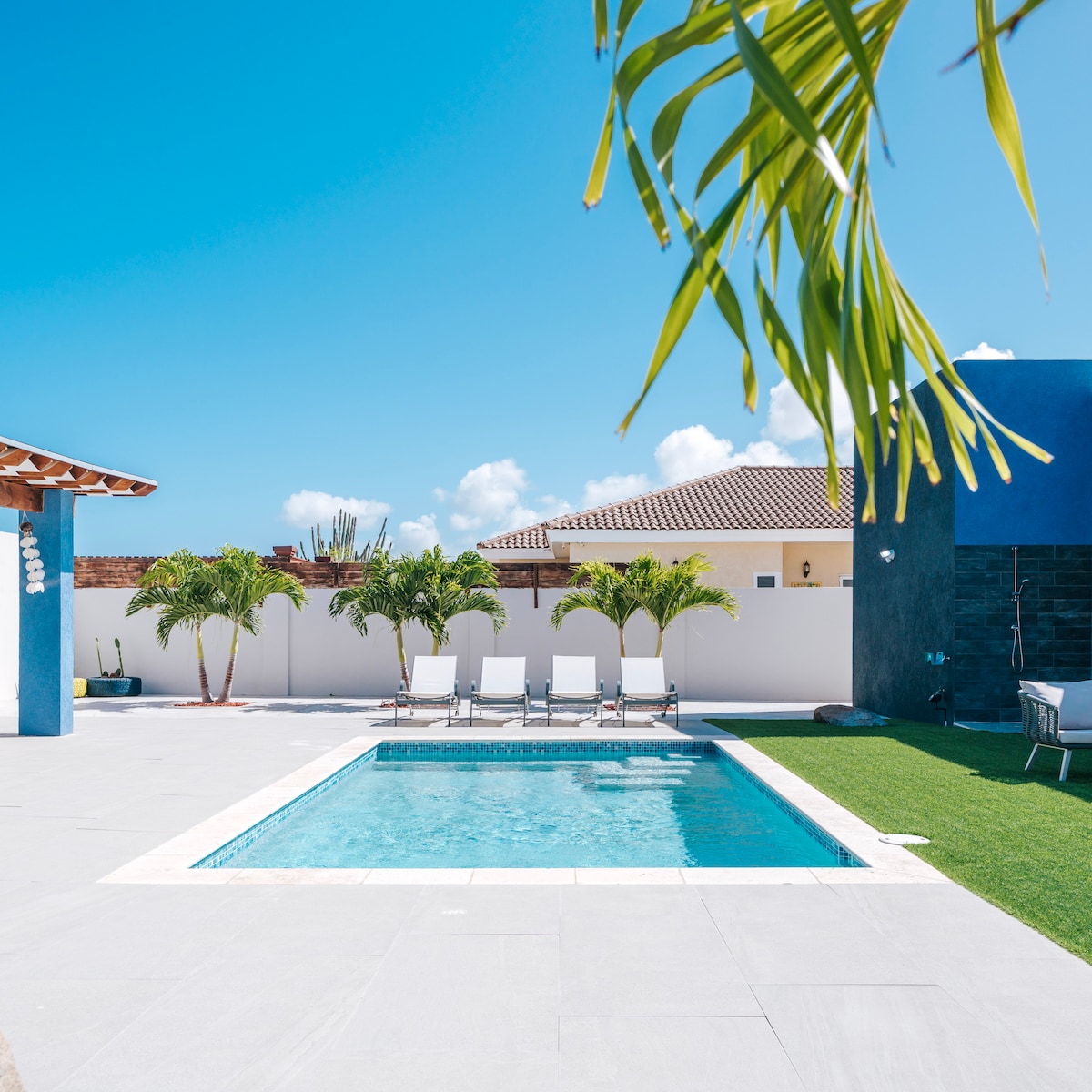 Opustite se u Evinom vrtu, modernoj vili sa 6 spavaćih soba i 6,5 kupatila na Arubi, savršenoj za porodice ili grupe do 12 osoba. Uživajte u svetlim životnim prostorima, privatnom bazenu i ograđenom dvorištu. Vila ima pametne televizore, brzi Wi-Fi, klima-uređaj, potpuno opremljenu kuhinju i vešernicu, nudeći udobnost i praktičnost u blizini najboljih atrakcija Arube. ✔ Privatni bazen i ograđeno dvorište sa roštiljem ✔ Potpuno opremljena kuhinja ✔ Pogodnosti za porodice i besplatan parking ✔ 2 privatna stana u bašti