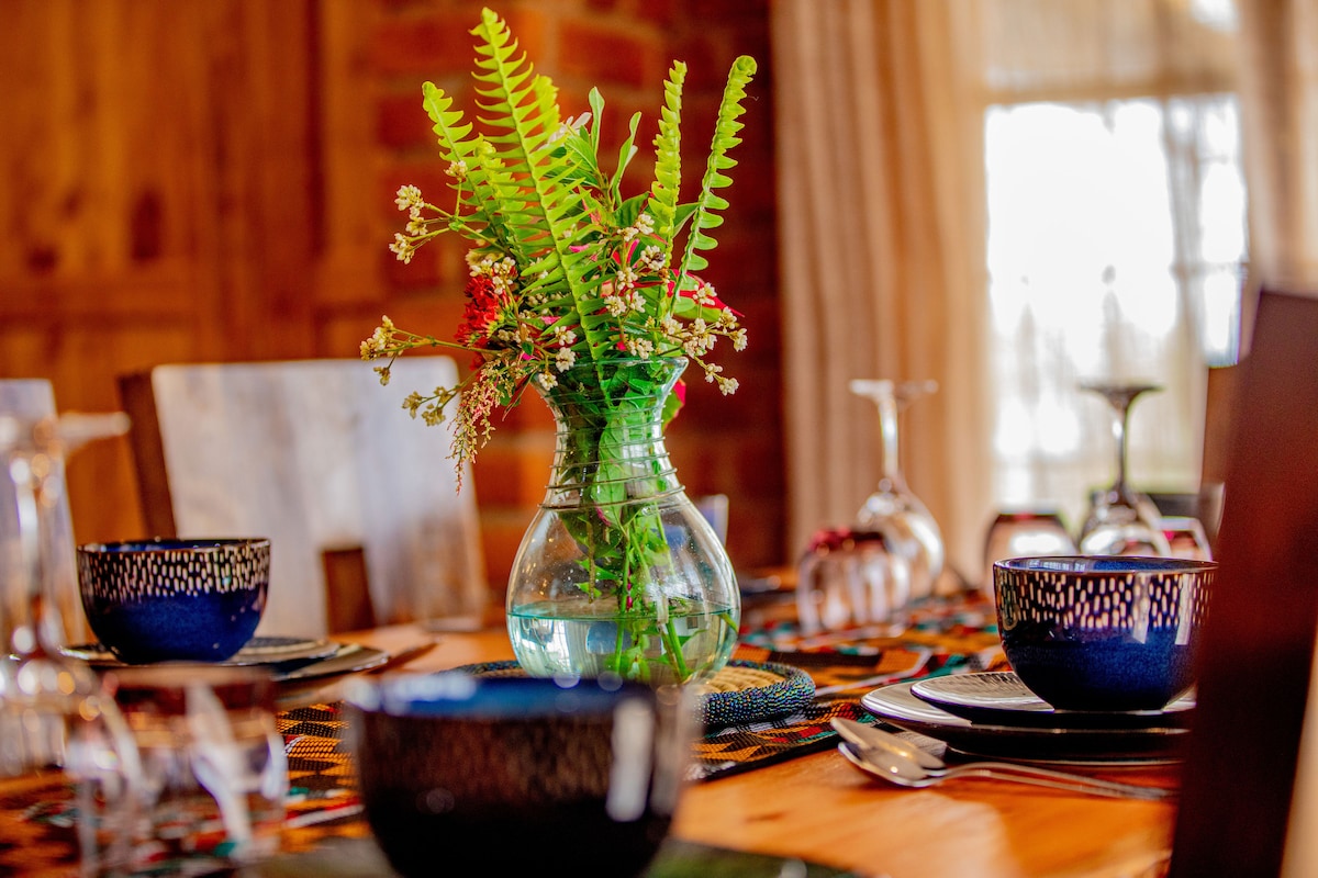 Privatna vila sa 5 spavaćih soba na vrhu brda u Aruši, savršena baza za putnike koji idu na safari u Serengeti ili Ngorongoro. Mnogi gosti borave ovde dok se pripremaju za svoje safari avanture. Umesto da rezervišete više hotelskih soba, uživajte u celoj privatnoj vili sa prostranim dnevnim boravkom, 5 spavaćih soba (od kojih 3 imaju kadu), 2 balkona na krovu sa pogledom, radnim prostorom, prostranom otvorenom kuhinjom sa trpezarijom, spoljašnjim vrtom i velikim parkingom. Ovaj prostrani dom može da primi do 10 gostiju. Rezervišite sada da biste uživali sa svojim najmilijima!!