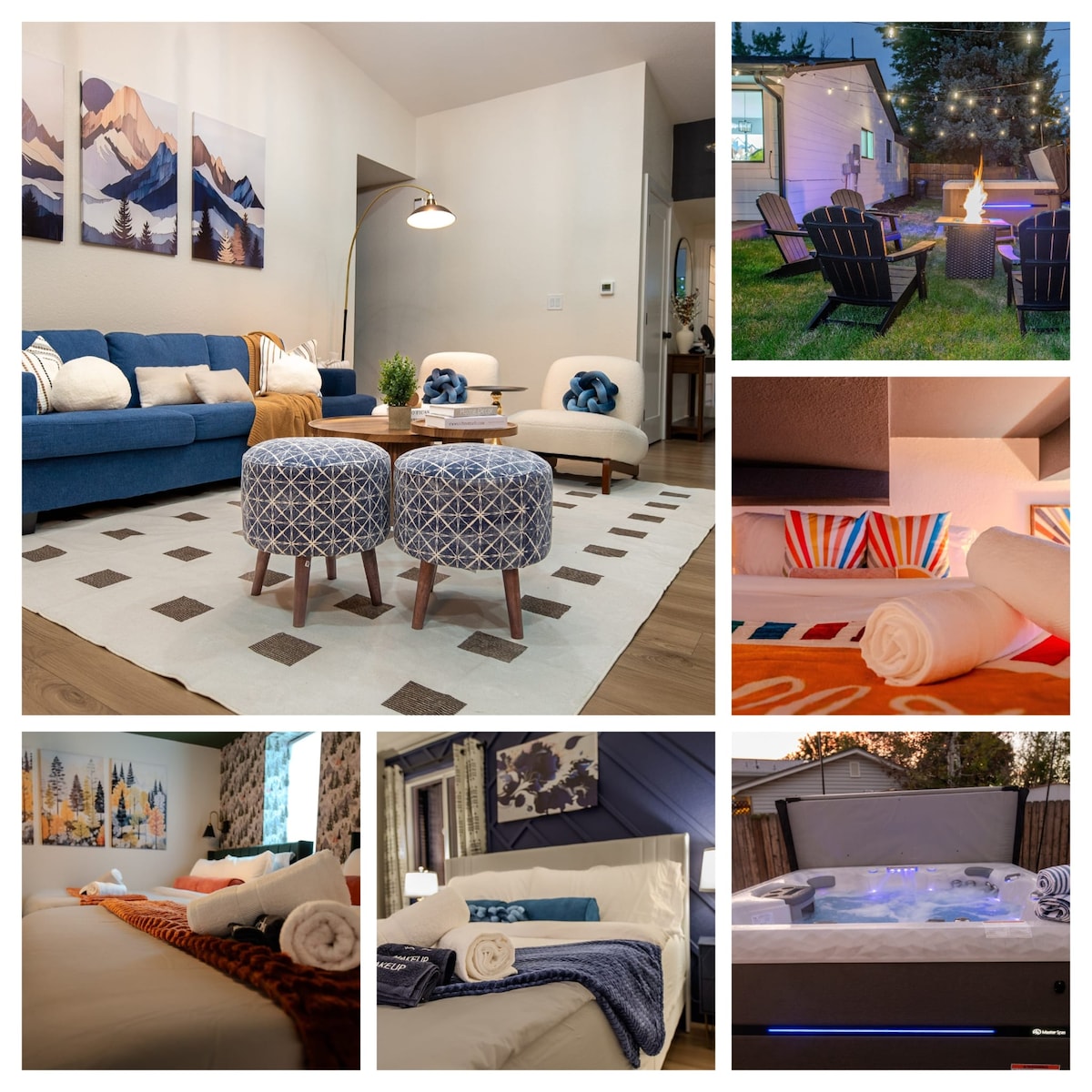 ColorPop BNB ima 2600 kvadratnih metara udobnog modernog prostora, 6bd/3ba i svijetlu kuhinju opremljenu osnovnom opremom! Opustite se u natkrivenom unutrašnjem dvorištu pod žičanim svjetlima nakon cjelodnevnog istraživanja. Udobno se smjestite i uživajte u svojim omiljenim filmovima na ekranu bioskopa od 100" 4K. Izazovite svoje najbolje prijatelje da igraju bilijar u preuređenoj garažnoj prostoriji za igre — pobjednik dobija prvi izbor kreveta! Profesionalni savjet: favoriti se nalaze u skrovištu u dječjoj sobi (veliki ormar Harija Potera), ali prima dvije odrasle osobe do 180cm!