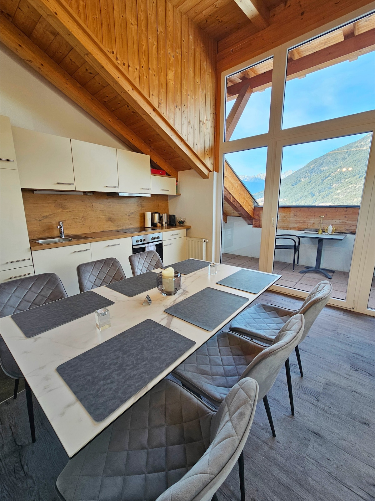 Puitalm – visoko. I prilično daleko od uobičajenog. Stanovi sa stilom, pogledom koji treba uokviriti i ovim tihim osjećajem: „Odsjest ću ovdje”. Mnogo svjetla, dobar dizajn, promišljeno do posljednjeg detalja – i da, svaka jedinica ima svoj balkon ili terasu sa pravom panoramom. Nema zuma, nema filtera. Pored toga: naš spa. Preljevni bazen s pogledom na dolinu, panoramska sauna, parno kupatilo, prostori za opuštanje s pogledom. Za one koji žele da se osjećaju kao da su ponovo normalni nakon boravka napolju. Bilo da planinarite, čitate, radite ili ne radite ništa, ovdje je sve bolje. Vaš vrhunski pas: 76–93 m² stambenog prostora | 2 spavaće sobe | Balkon s panoramskim pogledom Kapacitet: 4-6 osoba Sadržaji: Dve spavaće sobe sa bračnim krevetom i svaka sa svojim kupatilom, prostrana kuhinja sa prostorom za sjedenje (na razvlačenje), trpezarija sa prostorom za sve, balkon sa pogledom, 2 parking mjesta uključena