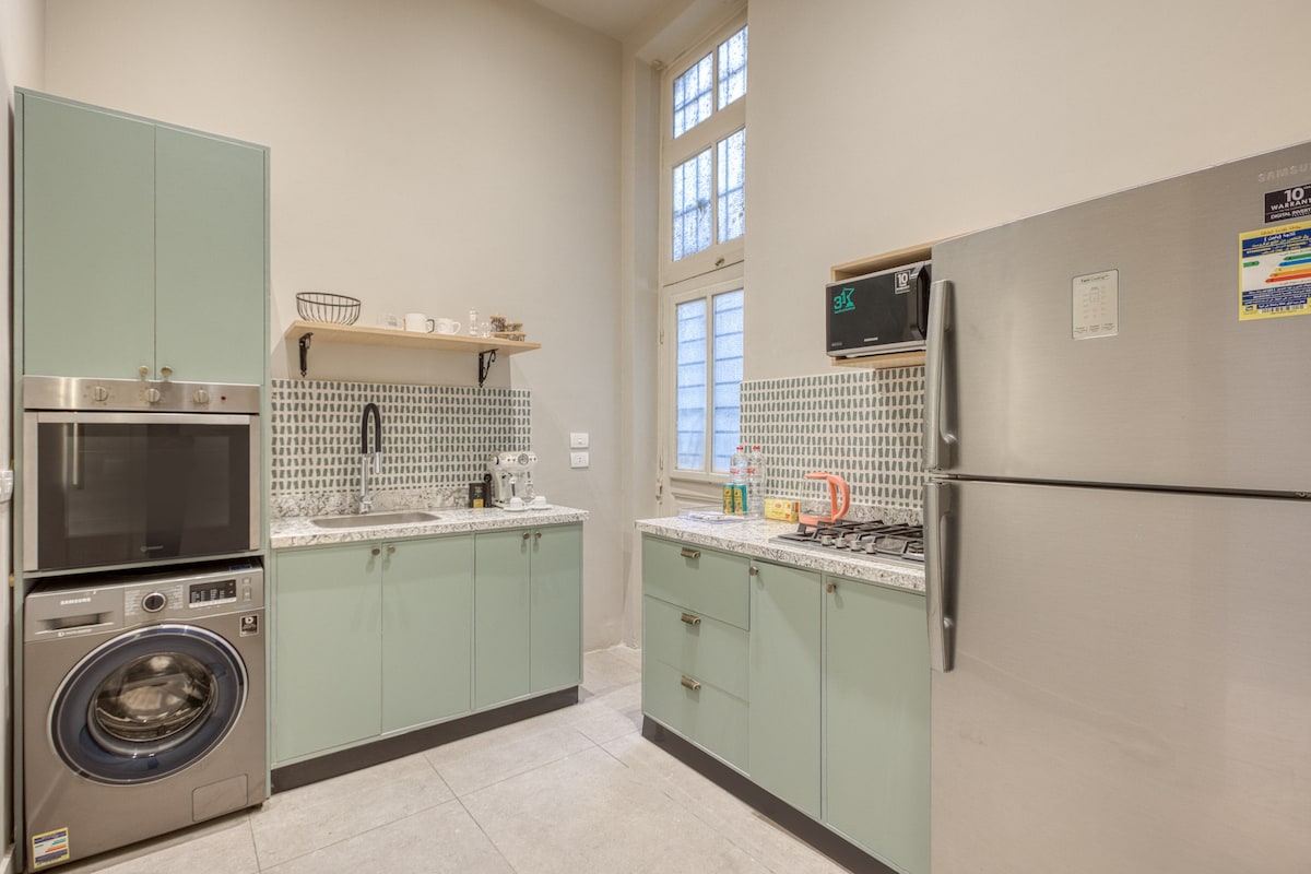 Nalazi se u istorijskoj zgradi u Sakakiniju! Smešten u srcu Kaira, na samo nekoliko koraka od živopisnih pijaca, modernih kafića i nekih od najpoznatijih znamenitosti grada. 🏛️ 5 minuta do Egipatskog muzeja/trga Tahrir 🚇 5 minuta hoda do stanice metroa ✈️20 minuta do Novog Kaira/ aerodroma 🛕20 minuta do piramida Prirodno svetlo koje prolazi kroz 3 velika, sunčana panoramska balkona i 7 panoramskih prozora u boji.