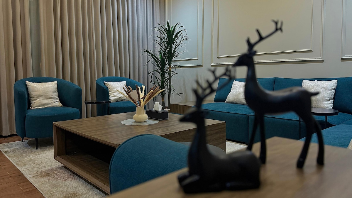 Nova stambena jedinica sa dizajnom i luksuznim i prepoznatljivim namještajem i smještajem koji vam pruža udobnost i dobrobit sa porodicom ili prijateljima , ima u blizini svih usluga, jednostavan pristup i potpunu privatnost, kao i ulaz u privatni automobil i ima dnevne boravke s pogledom na boravak na otvorenom i sesiju na otvorenom pored spavaće sobe, kuhinje, trpezarijskog stola i kupatila
