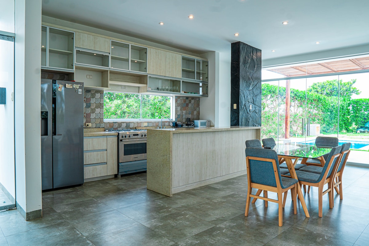 Udobna seoska kuća u kondominijumu Alto Pradera, na samo 3 km (1,9 milja) od Bulevara Azije. Potpuno opremljen za udoban i prijatan boravak. Nudi prostrane i bezbedne prostore, sa kupatilom u svakoj sobi. Pored toga, ima privatni bazen, idealan za opuštanje i uživanje sa porodicom. Savršeno mesto da se isključite iz grada. Glavni prostor već ima mreže protiv insekata! Cena varira u zavisnosti od veličine grupe. Porodični dom: Zabave nisu dozvoljene