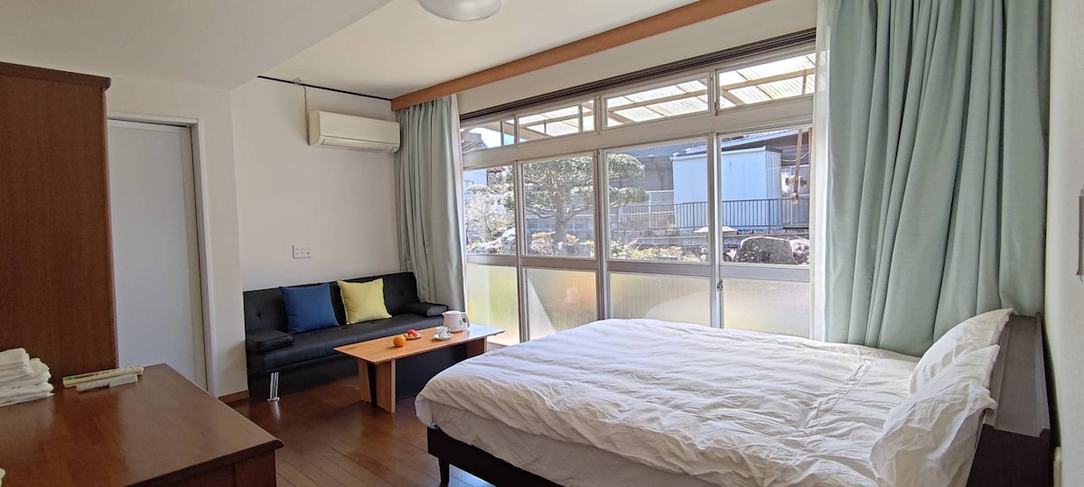 U glavnoj spavaćoj sobi nalazi se veliki ormar, a soba u japanskom stilu opremljena je jarkom kotacu (samo zimi).Kuhinja, kupatilo i WC su dovoljno prostrani da se ne osećaju nezgodno za dugoročnu upotrebu.Kuhinja je opremljena minimalnim začinima, pirinčem i proizvodima u prahu, a možete ih koristiti besplatno.Ako imate zahtjev za gosta, doći ćemo u vaš prostor i razgovarati s vama, ali ako to ne želite, nećemo ometati vašu prijavu sve dok ne popunite listu za prijavu i podijelimo jednostavan kućni red. Nalazi se u podnožju Mt. Aso na nadmorskoj visini od 600 metara, tako da ću normalno sresti divlje životinje.S obzirom na to da je priroda simbioza, molimo vas da razumijete neočekivane susrete u smještaju.(Dobili smo uputstva da domaćini moraju biti prisutni zbog zaštite od požara.) S obzirom na to da sam lično iskusio posao izdavanja dozvola za higijenu osiguranja isključivo u hotelima, pansionima, restoranima itd., uvek se trudim da održavam čisto okruženje, čistim i dezinfikujem ga.Budite uvereni i uživajte u putovanju i boravku u Minami Asu.