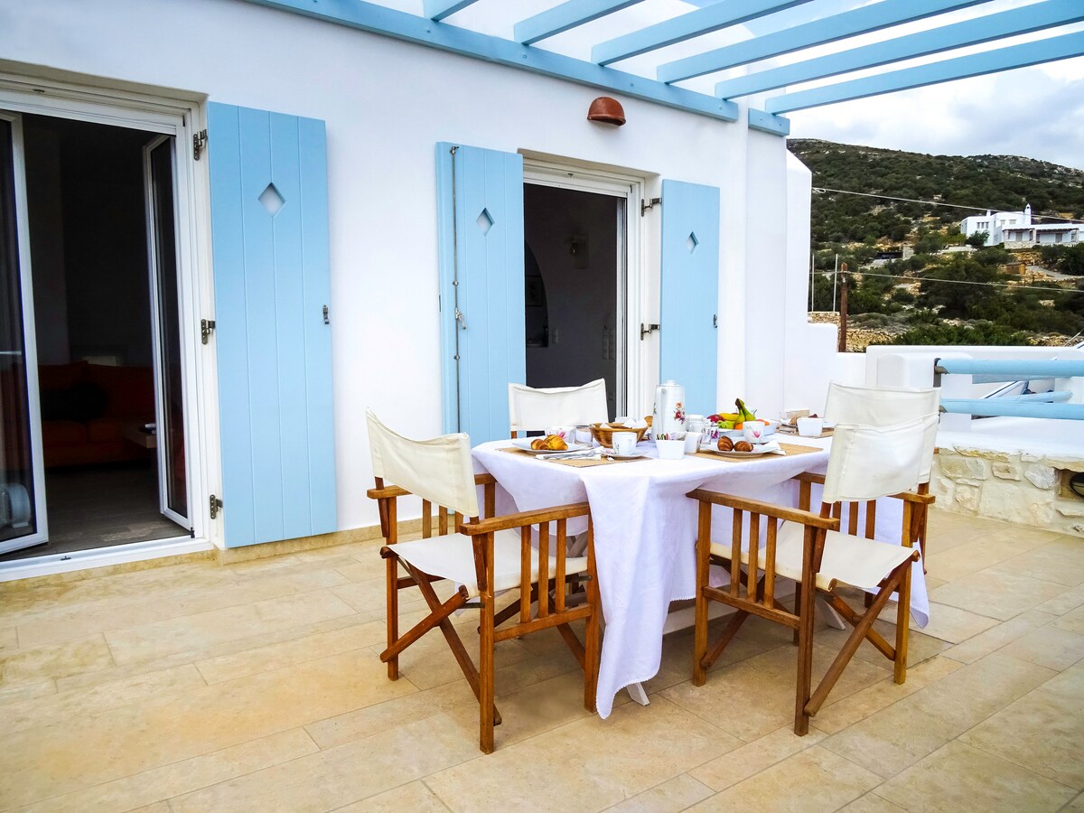 Το σπίτι βρίσκεται σε απόσταση 500 μέτρων από το κέντρο του χωριού χάρη στην τοποθεσία του πάνω στον λόφο προσφέρει ιδιωτικότητα καταπληκτική θέα στην θάλασσα, στα γύρω νησιά Νάξο, Σχοινούσα, Δρυονήσι, Ίο , Σίκινο, καθώς μπορείτε να δείτε και την ανατολή του ηλίου. Είναι μόλις 3 λεπτά με το αυτοκίνητο από Σούπερ μάρκετ, εστιατόρια, καφέ μπαρ.
