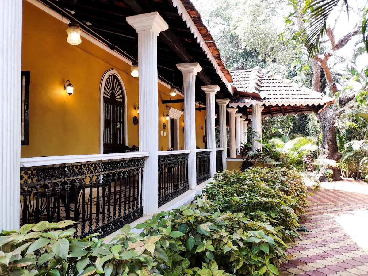 The property is the famed Gonsalves Mansion, best known for hosting Jazz events over the years. The Mansion is almost 100 years old, built during Portugese rule in Goa with over 22 rooms. currently resided by the owner, Armando Gonsalves, his wife Shaeen & 2 toddler sons Liam and Stellan. But the majority of the Mansion including courtyards, verandah, garage, dining hall, kitchen etc are part of this listing. Mr. Gonsalves has named the suites after his kids Nihal, Zenisha, Liam and Stellan.