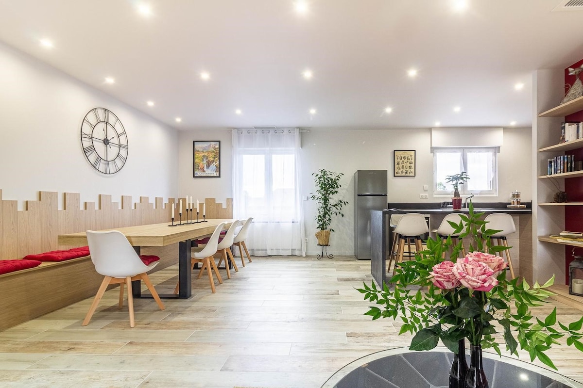 Dobro došli u čauru: Instant Pirineji. Smešten ispod krovova, u srcu Banjer-de-Bigora. Ovaj šarmantni stan sa izloženim gredama uranja u toplu i prirodnu atmosferu, idealan za romantičan odmor. Dekor kombinuje drvo i zelenilo kako bi se stvorila umirujuća atmosfera. Prirodne biljke donose dašak svježine i spokoja, dok privatna hidromasažna kada ispod tavana obećava trenutke čistog opuštanja.