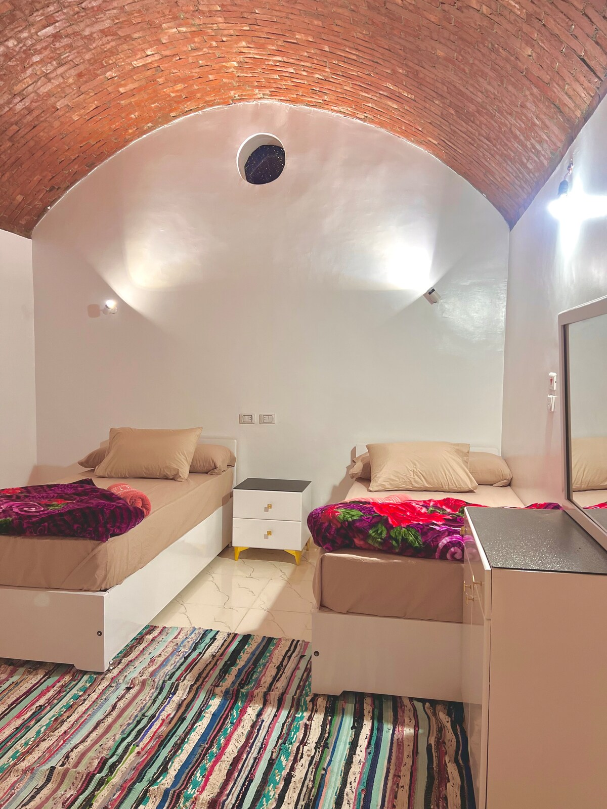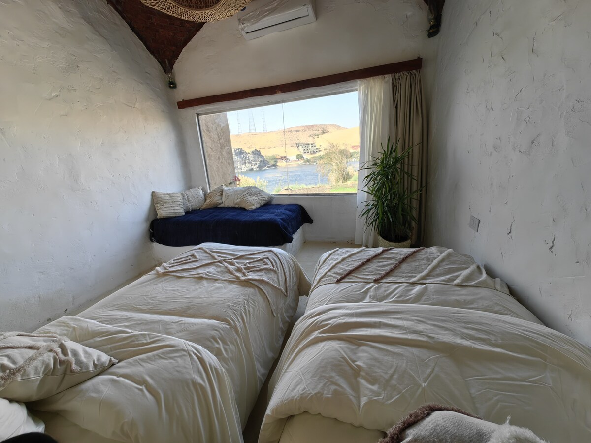 An inspiring homestay located on Heissa Nubian Island. The room offers two comfortable single beds and a calm space ideal for grounding. Guests can enjoy shared spaces including a patio, a library corner, and a terrace. Breakfast and herbal teas are prepared using seasonal ingredients and herbs grown in the house garden. A shared kitchen and bathroom with the host who lives on site to support guests and enhance their stay with local expertise. Couples or Female guests only.