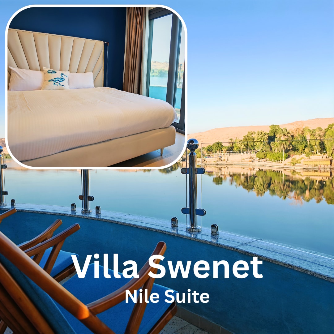 استيقظ على اجمل منظر ف اسوان يطل على النيل و على جزيرة النباتات و مقبرة اغاخان الاثرية ويطل على تلال رملية