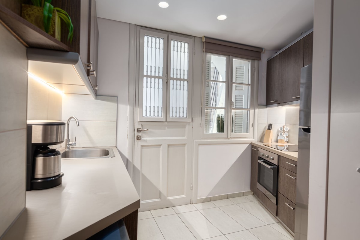 Opustite se u ovoj udobnoj dvokrevetnoj sobi u objektu PAME Paradiso 🌿 Ima udoban krevet, sve osnovne sadržaje i mali privatni balkon s pogledom na mirno dvorište – savršeno za mirnu jutarnju kafu ili večernje opuštanje. Smešteni u mirnoj pešačkoj ulici u živopisnoj četvrti Egzarhija, uživaćete u mirnom boravku, a samo nekoliko minuta hoda vas deli od metroa, živahnih barova i tradicionalnih taverni. ✨