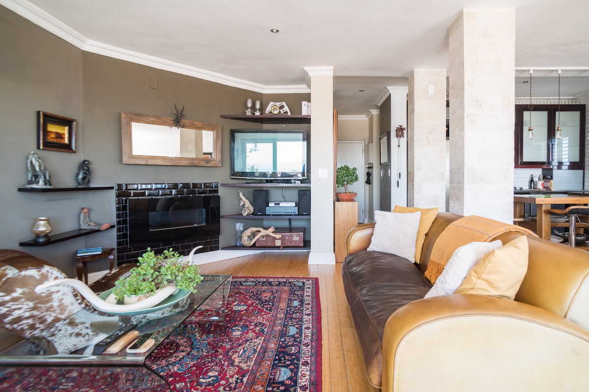 The Art Deco Penthouse is an exclusive, hidden secret with totally uninhibited ocean views. It overlooks the ocean and the famous Sea Point Promenade. You can hear the waves and look across the bay all the way to Robben Island. This little piece of old world luxury includes a beautiful luxury bedroom suite, a relaxing Observatory Lounge sun room with fireplace and plunge pool. This is the ultimate central location in Cape Town, close to the City.