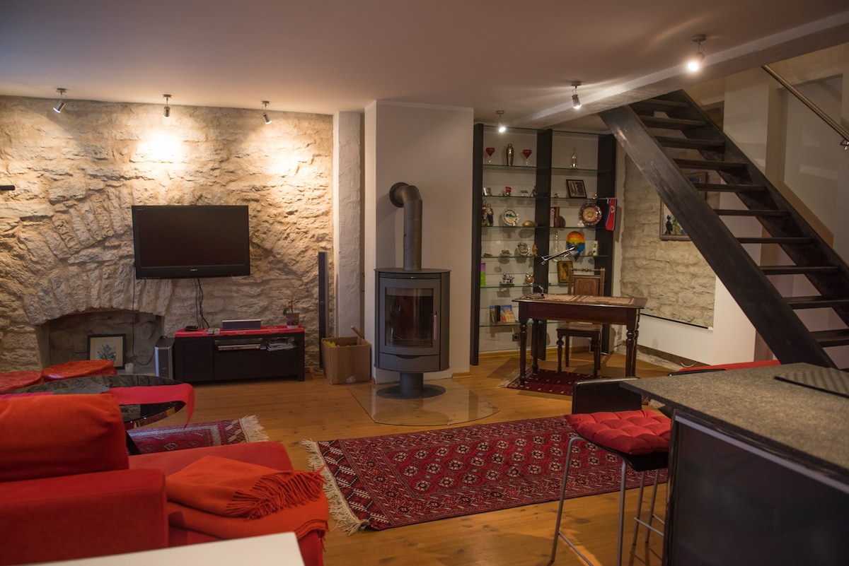 Svježe renoviran šarmantni stan sa 1 spavaćom sobom i francuskim balkonom. Stan je deo srednjevekovne kuće Hansa Merchant 's House, koja se nalazi u samom centru Starog grada. Nudimo jedinstven smeštaj u uređenom stanu sa istorijskim detaljima. U centru svih interesa, restorani, kafići, prodavnice, muzeji, javni prevoz, noćni život, porodične aktivnosti itd. Nalazi se u mirnom ograđenom dvorištu. Idealan stan za parove, porodicu, prijatelje, poslovne putnike ...