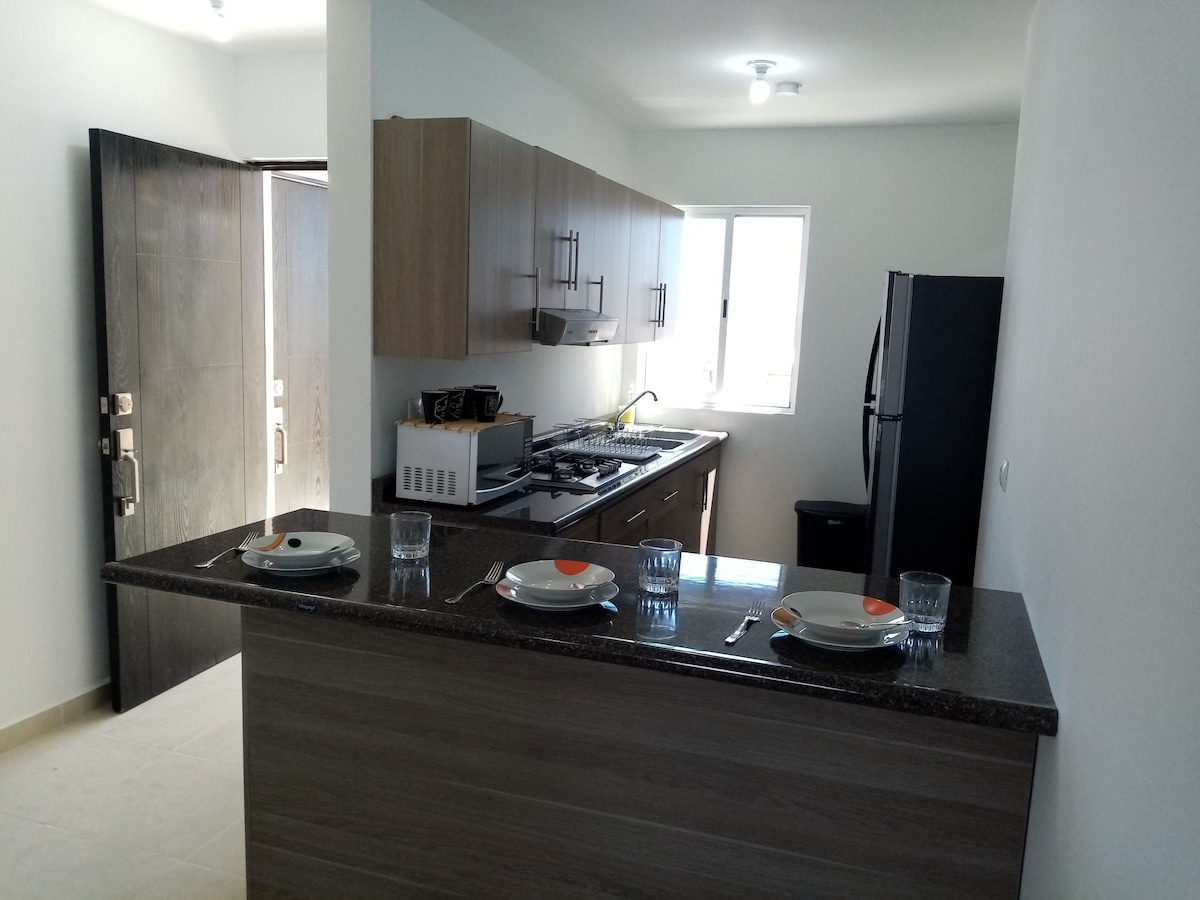 Stan 200 metara od plaže, 5 minuta hoda, ne trebaju vam kolica. Stan se nalazi na 1. spratu i ima: -Recamara Principal with Queen size bed - SecondaryRecamara sa bračnim krevetom na sprat -1 kupatilo i 1/2 kupatila - Opremljena kuhinja - Dijeljenje i trpezarija - Pametni TV u dnevnoj sobi - Wi-Fi - Balkon s pogledom na bazen - Terasa sa pogledom na okean Sadržaji: - Bazen - Palate sa plinskim roštiljem - Bicikli - Prostor za fitnes -Mini Golf - Igre za djecu - Teren za odbojku -kontrolisani pristup