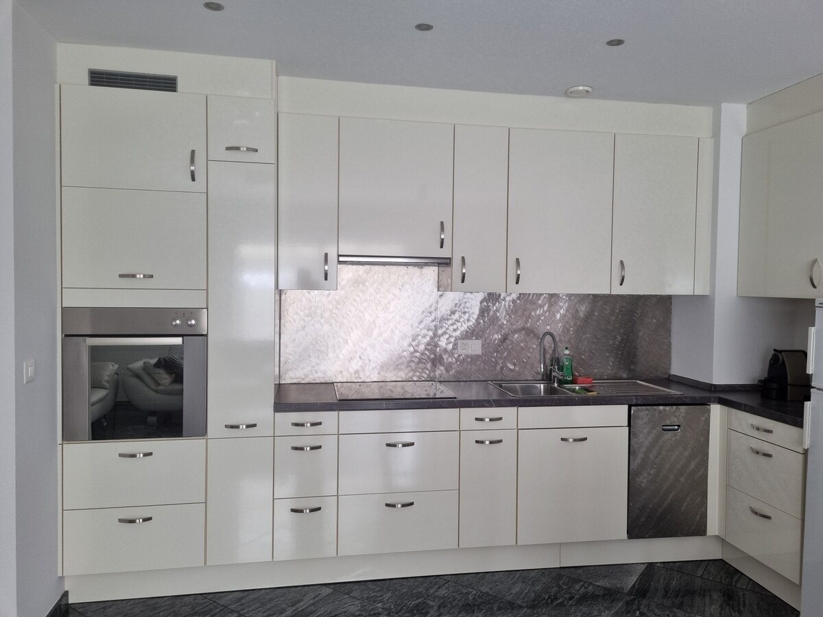 This beautiful, newly built two family house with spectacular views of Lago Maggiore, Ronco, Italy, Ascona and Locarno will take your breath away. The spacious apartment (150 m2) has floor to ceiling windows in every room, an open plan custom designed kitchen, a large terrace overlooking the lake and two parking spaces. It also offers a lift and is fully wheelchair accessible. Ascona, lake access and shopping facilities are a short 10 min car ride away.