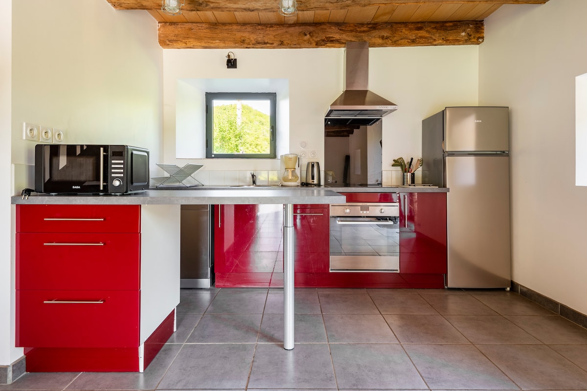 A 5 minutes de Laguiole, Le Buron de Terres Rouges, restauré par nos soins en 2019 avec goût mêlant ancien et moderne, vous accueille dans un lieu unique et emblématique avec un paysage à vous couper le souffle. Cuisine tout équipée, cheminée avec insert, coin salon dans une voute avec TV. 2 chambres lit queen size, possibilité de rajouter un lit 90, lit bébé. Salle de bain avec douche a l'italienne, machine à laver, WC séparé. Le buron se situe à 400 m de la route, accessible en voiture.