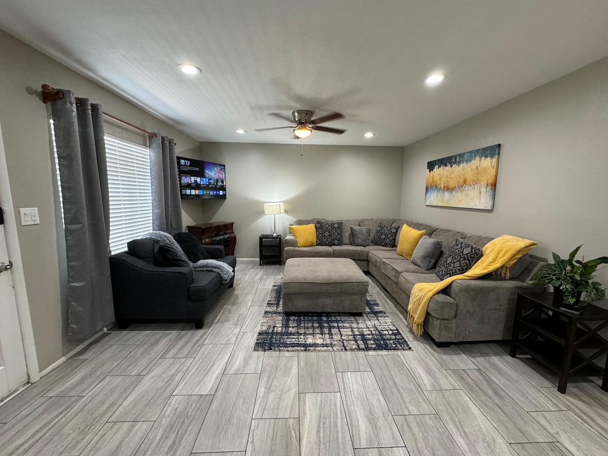 Video https://vimeo. com/952431082 Vaša porodica će vam biti blizu svega kada odsjednete u ovom stanu koji se nalazi u centru grada. Prelijepa zajednica na obali jezera u pustinji, 2. sprat, 3 spavaće sobe i 2 kupatila. Imamo grijani bazen i spa centar, sa teniskim terenima i roštiljem na plin za vaše uživanje. Televizori u svakoj sobi i vrlo udoban namještaj! Zatvorite previše odličnih restorana, zabavnih parkova za sve. U blizini svih glavnih autoputeva radi lakšeg pristupa širom države.