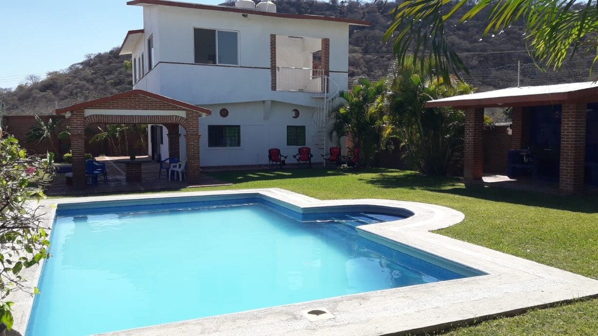 Lepa i funkcionalna kuća u Kuautli, na visini Ajala na 20 minuta od Plaza atrija, idealna je za odličan vikend, sa grijanim bazenom, Bluetooth zvučnikom, Wi-Fi mrežom, roštiljem, bilijarom, ping pongom, golom, stonom fudbalom, krevetima, parkingom za 2 automobila. Od osobe 14, naplatiće se iznos od 300 $ po osobi. Ako ste zainteresovani da organizujete neki događaj, obratite se za ponudu. Jedva čekamo da vas vidimo! Postoje zdravstvene mere