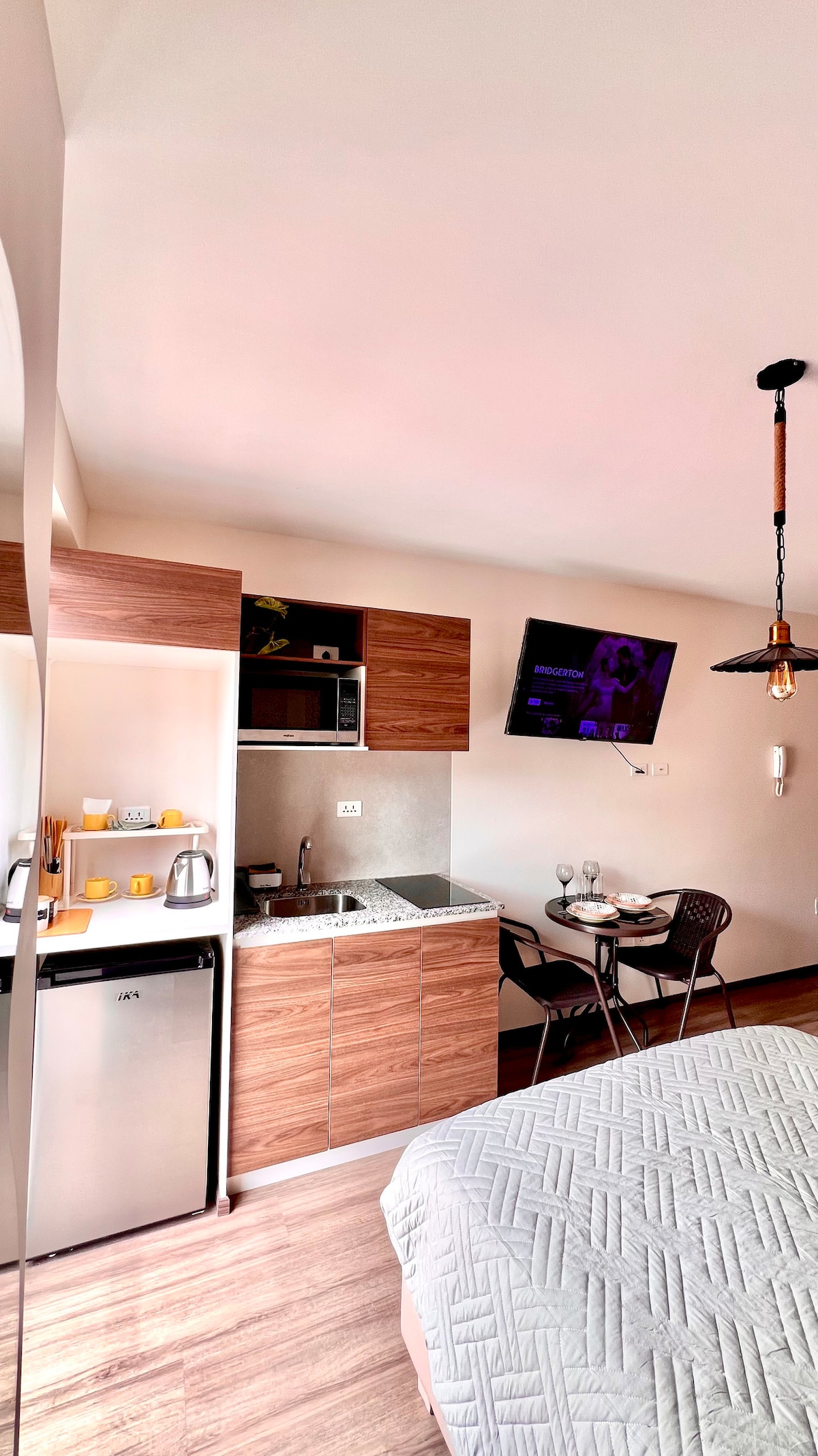 [Španski, engleski, francuski] Svijetli i udobni novi studio apartman, u najboljem dijelu Kočabambe u blizini tržnih centara, restorana, parkova, finansijskih subjekata, pijaca, supermarketa, barova. Zajedničke prostorije uključuju preljevni bazen (trošan vikendom i praznicima), churrasquero, besplatne mašine za pranje veša, TV Netflix. Biće mi drago da vam poželim dobrodošlicu i da vam pružim prijatan boravak.