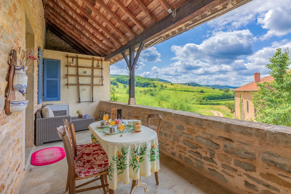 U regionu Mâcon, ova velika burgundska kuća (250 m²) je naša porodična kuća, nalazi se u zaseoku sela, zelenom okruženju sa pogledom na vinograde . Park je šumovit i u potpunosti ograđen električnim vratima, roštiljem i baštenskim namještajem. Pristup kući je na 1. spratu preko kamenih stepenica. Kuća može da ugosti do 10 gostiju u 4 spavaće sobe.