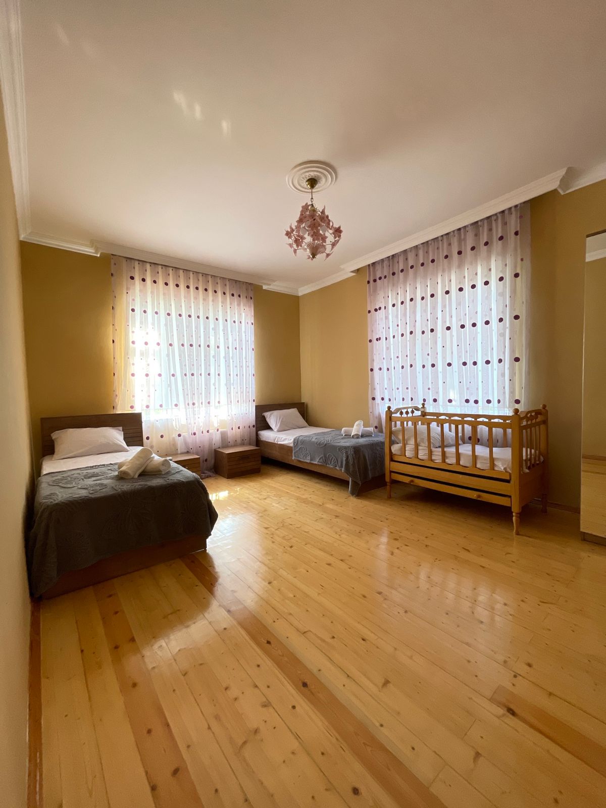 Gabala city, on the way to Gebelende entertainment center, near Asagard restaurant, 2 bathrooms, 3 bedrooms, 6 beds, 1st bedroom 1 couch for 2 people 2nd bedroom 2 single 3rd bedroom 2 single wifi Grill simovar Air conditioning besetka swing and has everything you need and equipment. There are two Villa if you Big Family this is also suitable for you near-river 130 m Ropline 1.5 km Gabaland entertainment center 1.2km Asagard restaurant - 60 m