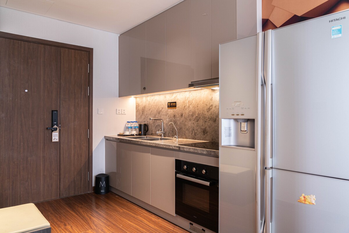 Stan se nalazi u zgradi H3 Masteri Water Front najvišeg luksuza Vinhomes Ocean Parka. To je zasebno urbano područje sa romantičnim pejzažima, svežim vazduhom, mnogim velikim jezerima i veštačkim plažama. Udaljen je 20 minuta vožnje od starog centra grada u Hanoju Vinbusom ili taksijem. Prostor od oko 50 m2 – sa velikim prozorom, možete gledati izlazak sunca U zgradi M2 imamo predvorje sa recepcijom koja radi 24/24, teretanu i dečju zonu u blizini zgrade i zatvoreni bazen (samo leti) i krovnu baštu na krovu zgrade H3
