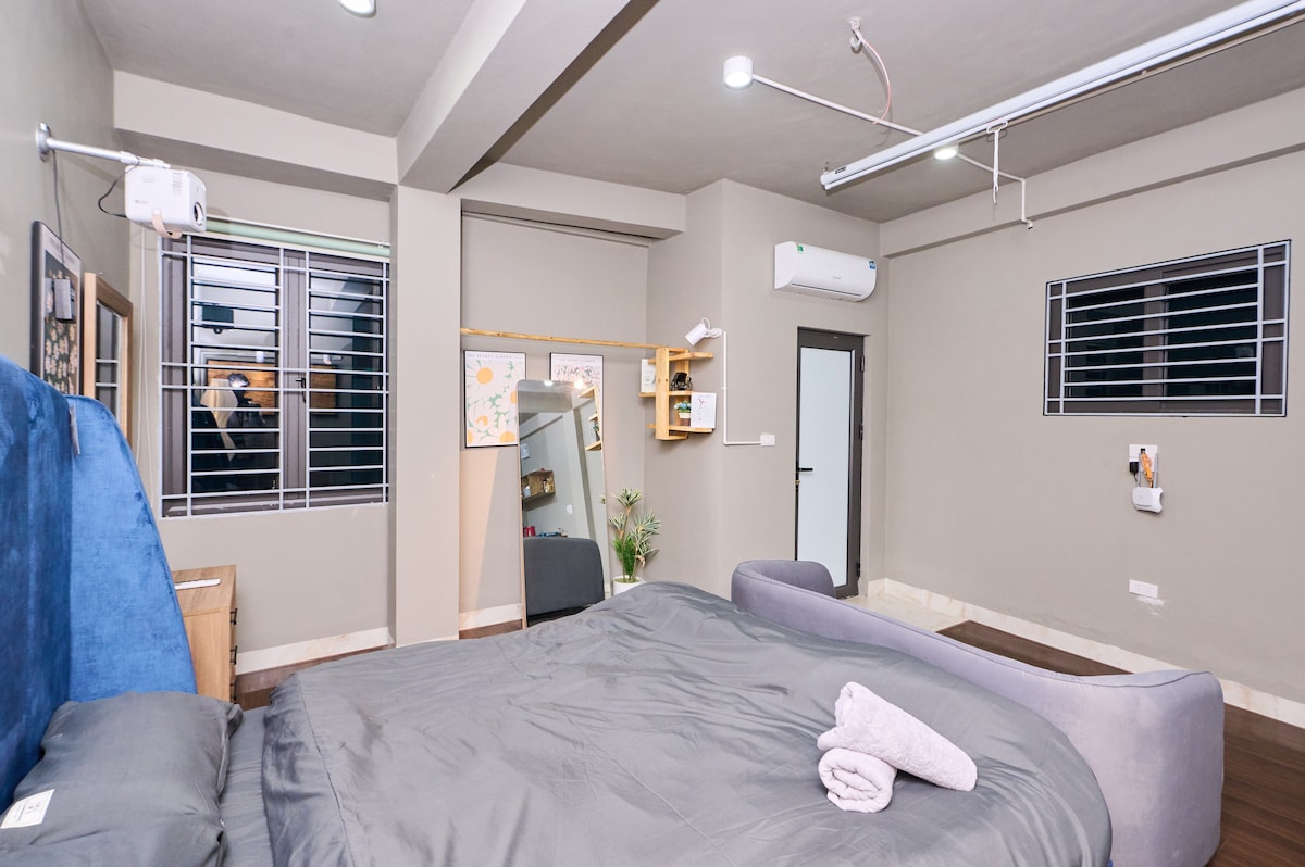 Soba se nalazi u sedmospratnoj zgradi sa liftom, što će vam pružiti udoban smještaj za odmor kada ste na poslovnom putovanju ili putovanju. Smještaj je udaljen više od 1 km od tržnog centra Lotte 2 km do mosta Nhat Tan 4 km do Vest Lejka Do starog grada: 6 km Stan ima opuštajući projektor, balkon ispunjen svjetlošću i udoban krevet, potpuno opremljenu kuhinju u kojoj možete sami da pripremate obroke po sopstvenim željama. Okolina je takođe vrlo pogodna sa mnogim super takmičenjima, prodavnicama i kafićima.