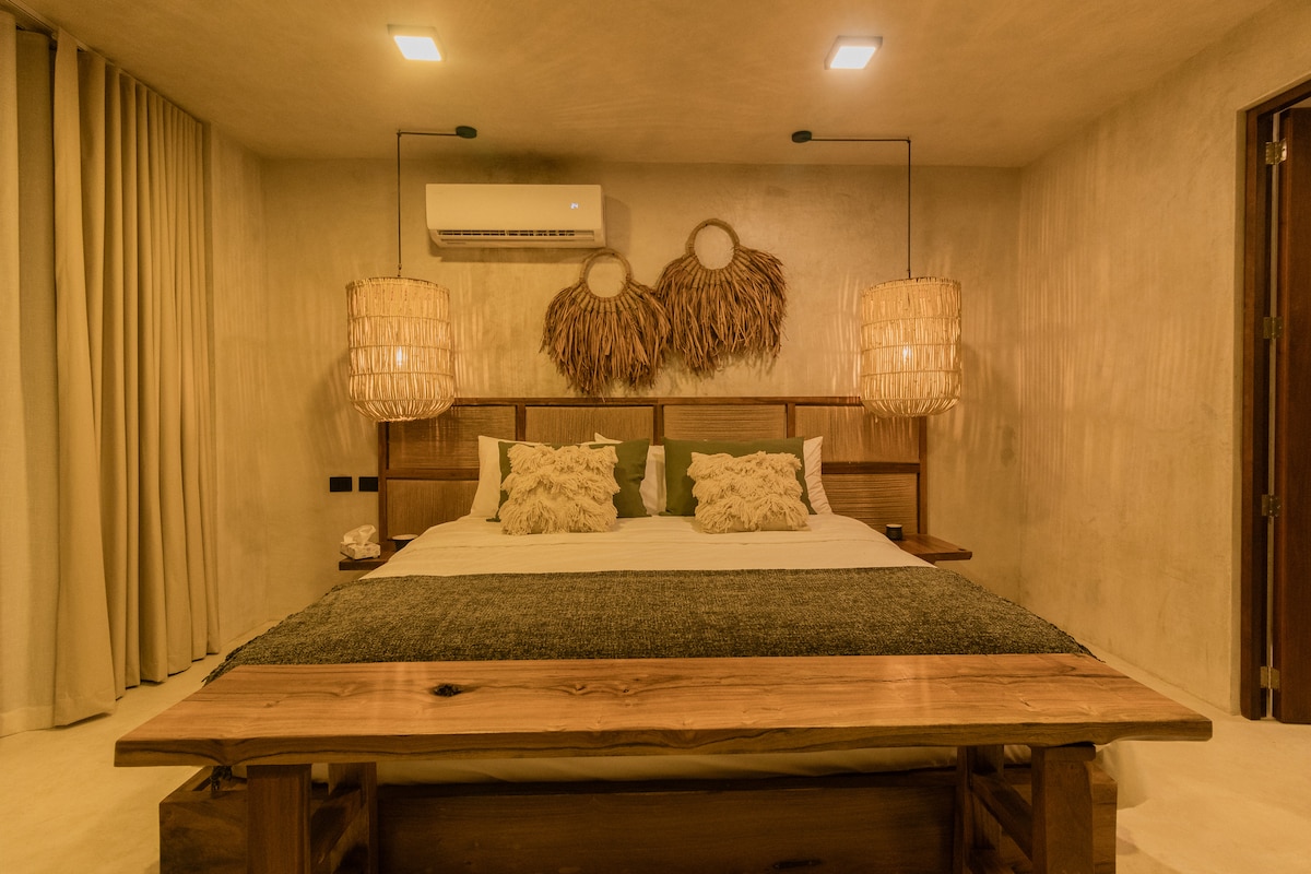 Yaya Suite te ofrece una experiencia inolvidable frente al mar en Mahahual. Recientemente renovada, ahora con techo de cemento y aire acondicionado moderno. Disfruta del sonido de las olas desde tu cama, diseño de lujo, agua caliente, Smart TV y wifi rápido. Incluye 10% de descuento en Yaya Beach Club con camastros, comida y cocteles frente al Caribe.