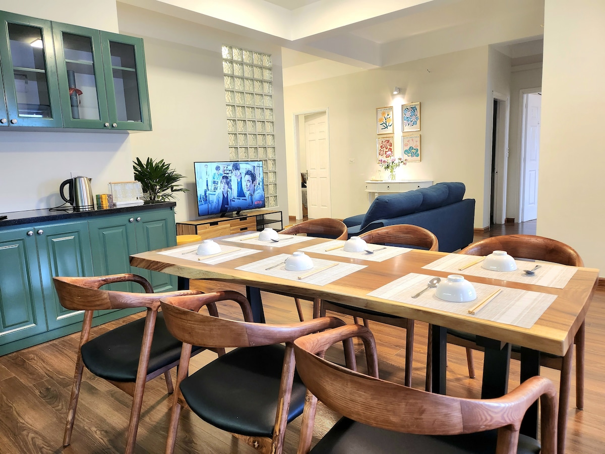 Naš prostrani, tihi, potpuno klimatizovani apartman nudi 3 spavaće sobe, 2 kupatila, kompletnu kuhinju, vešernicu i neograničenu količinu vode za piće filtrirane RO filtrom. Udaljen je 10 minuta vožnje (0,5–3 USD po Grab taksiju) od Starog kvarta u Hanoju, sa namirnicama, prodavnicama, restoranima i kafićima u blizini. + 5 minuta vožnje: Univerzitet nauka u Hanoju, Nacionalni ekonomski univerzitet, Univerzitet građevinskog inženjerstva u Hanoju... +10 minuta vožnje: Vincom centar, područje japanskih restorana (Bui Thi Xuan)... Liftovi i parking u sklopu objekta