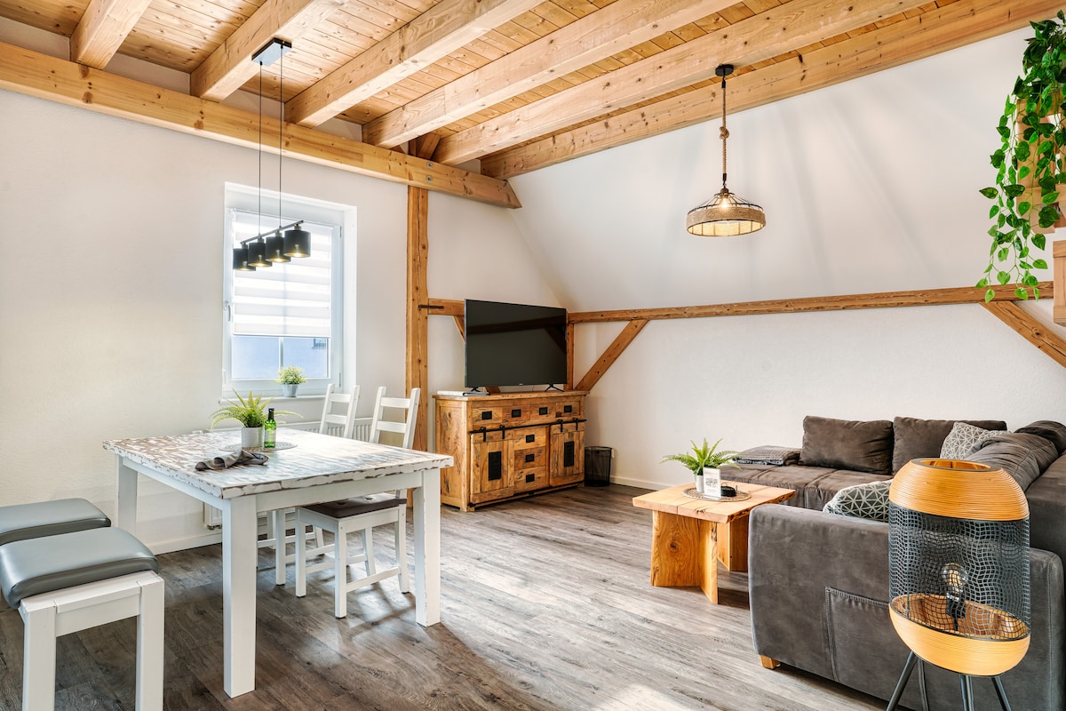 Odsjednite u šarmantnom stanu u zgradi kulturnog nasljeđa od pola drveta pored bivšeg manastira sa stotinama godina istorije! Centralna lokacija i jedinstvena mješavina autentičnog istorijskog stila i modernih životnih sadržaja učiniće vaš boravak nezaboravnim iskustvom. Sve znamenitosti, muzeji i restorani u Rotenburgu su u blizini. Ukusan doručak i jedno parking mjesto su uključeni u vašu rezervaciju! Koristimo 100% obnovljive izvore energije.