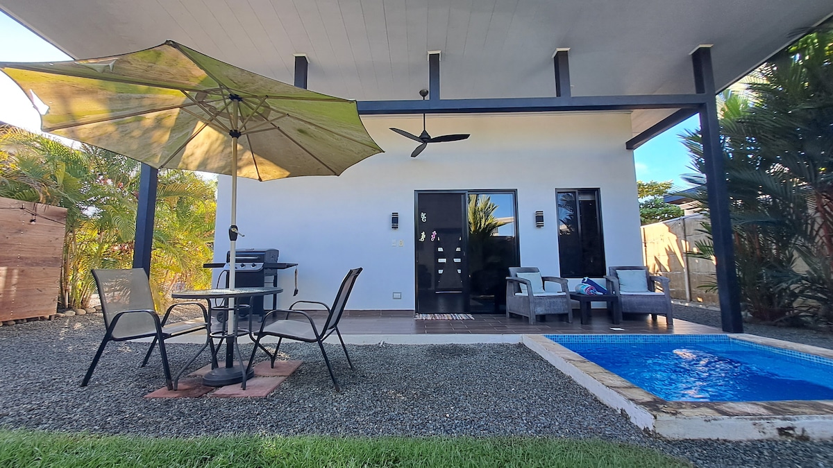 Open-concept villa equipped with all the comforts of home; fully stocked kitchen, smart TV, BBQ, plunge pool, wifi, and a private terrace/backyard. End a perfect day by sinking into the luxurious King bed, raved by guests as the comfiest bed in town. NO visitor policy and PLEASE no children/babies permitted. No 4X4 needed. Walking distance to shops, restaurants, banks, grocery stores, a short drive to Marino Ballena National Park and the most beautiful beaches!