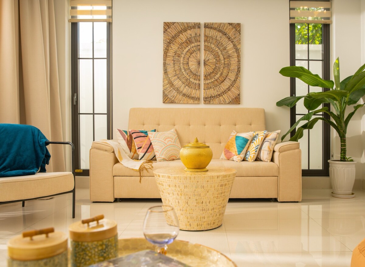 Uživajte u udobnom boravku u modernoj vili sa 5 spavaćih soba u blizini mosta Tuan Fuok, idealnoj za grupu prijatelja ili porodicu koja želi da pronađe privatni, potpuno opremljen prostor u Da Nangu. Vila ima privatni bazen, svetao dizajn, moderan nameštaj i prostran zajednički prostor – pružajući prijatan osećaj kao kod kuće. Savršeno mesto za odmor, okupljanje prijatelja ili organizovanje grupnog putovanja u privatnom i opuštajućem prostoru.
