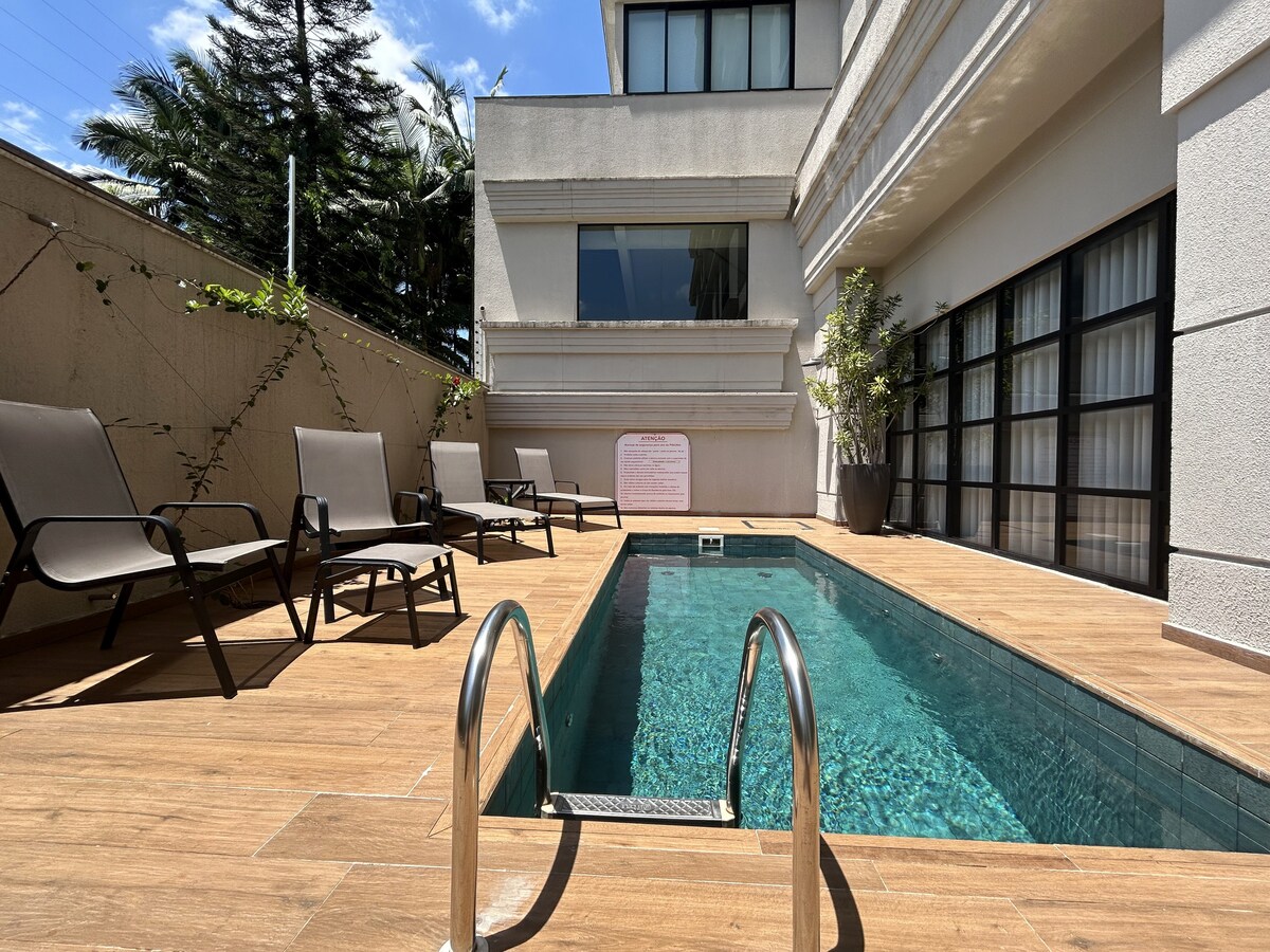 Loft aconchegante e estiloso, com marcenaria planejada, localizado em uma das melhores regiões da cidade. Próximo ao Centreventos, Teatro Bolshoi, padarias, bares, restaurantes, farmácias, comércios e parques. O LOCAL: Edifício automatizado e seguro, áreas comuns planejadas, inclui academia, piscina (não aquecida), lavanderia compartilhada OMO e mercado. Prezo pelo cuidado em cada detalhe da sua experiência, com higienização adequada, orientações claras, respeito e atenção a cada hóspede.