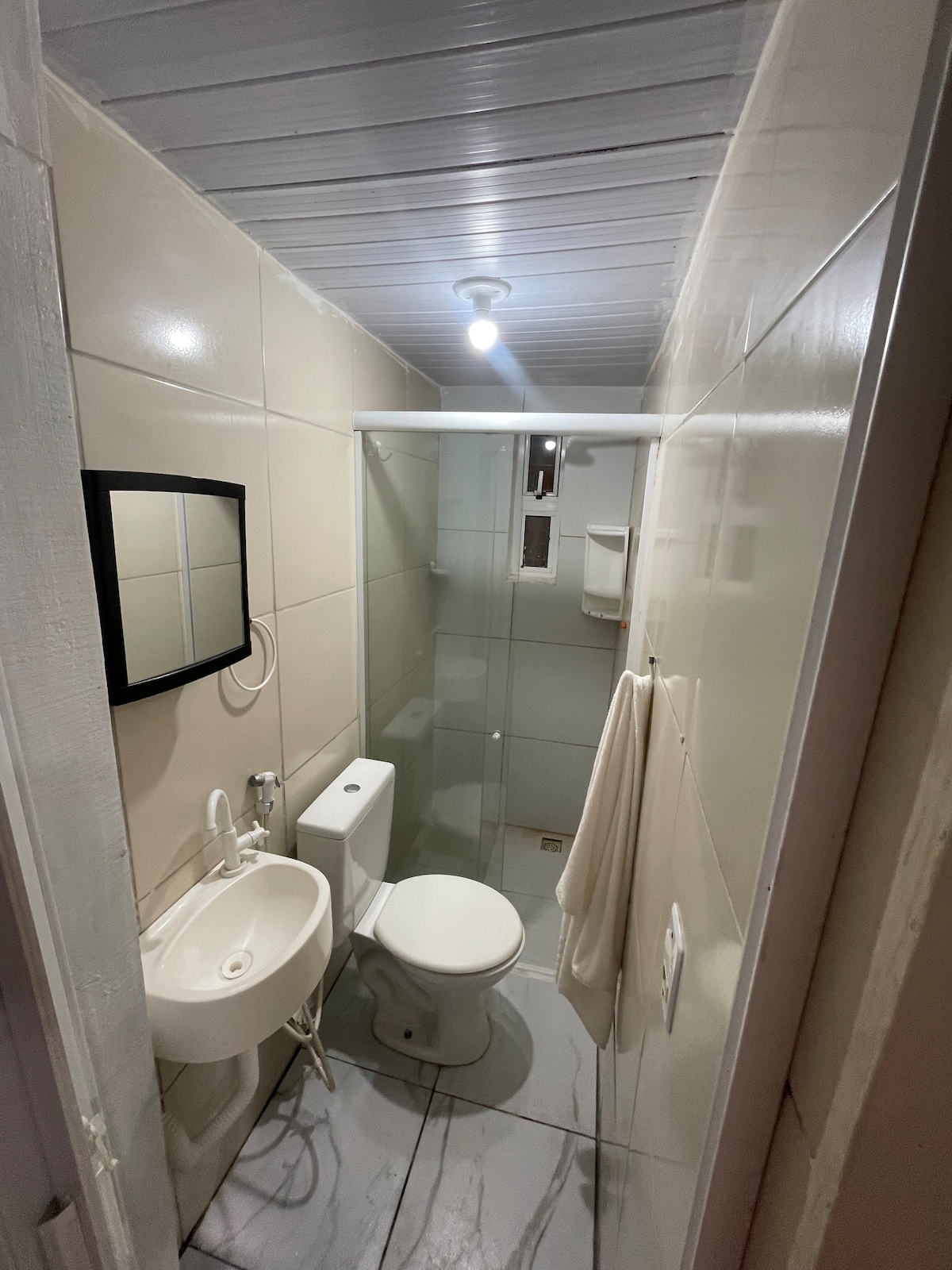 São lindas casinhas independentes, com amplo jardim em meio às arvores, agora com esse espaço totalmente novo. Conta com 1 cama de casal, (roupas de cama e toalhas de banho trocadas a cada semana), Ar Condicionado e ventilador de teto, TV , WiFi, mesa para trabalhar, cozinha americana equipada com utensílios básicos, fogão e geladeira, banheiro com chuveiro elétrico, rede, área de serviço, chuveiro externo e estacionamento externo para carro. Estou disposto a qualquer ajuda ou informação.