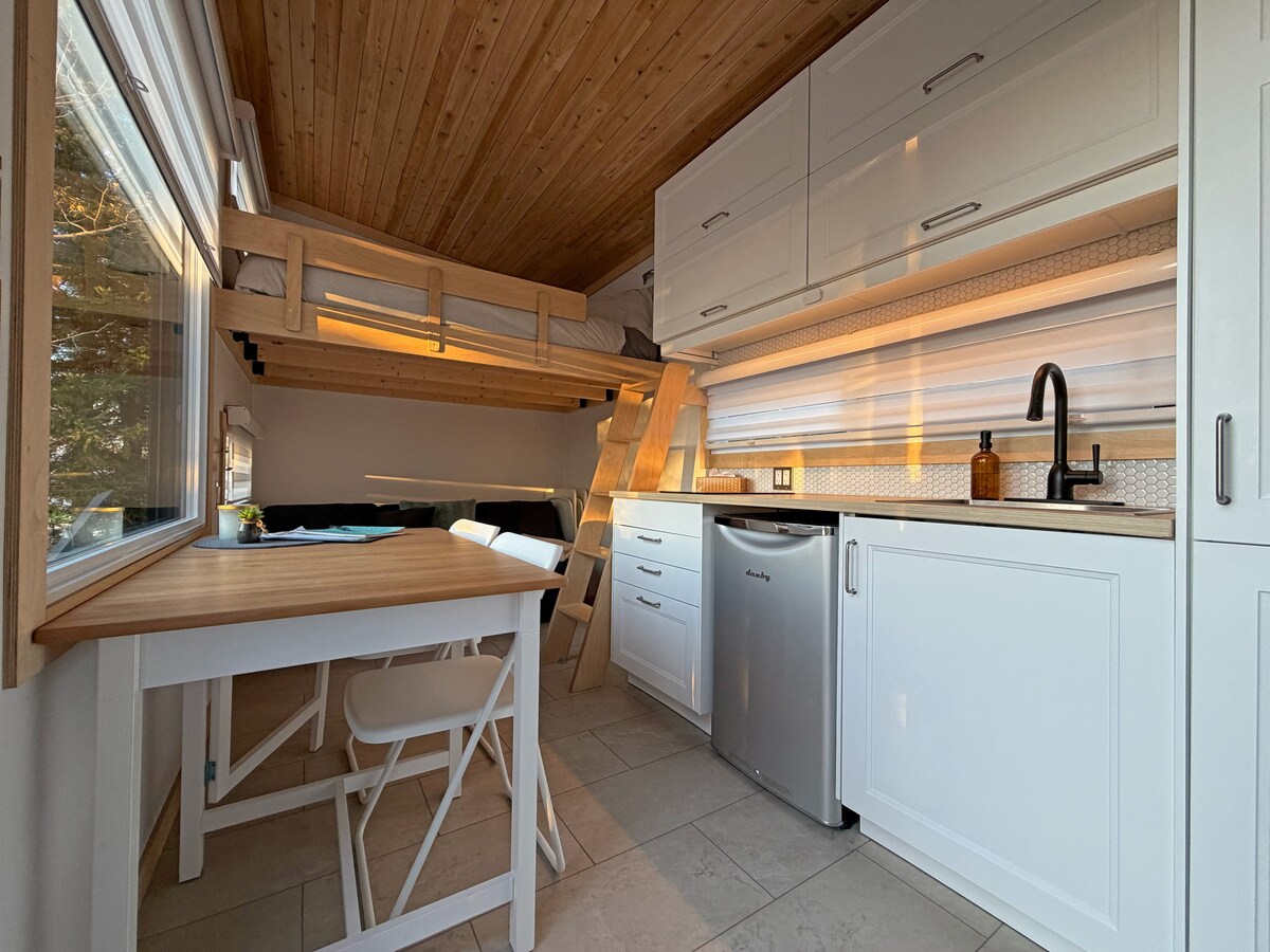 Na velikoj šumovitoj parceli s pogledom na prelijepu Lac Matapédia, ova topla mini planinska kuća, potpuno renovirana i opremljena, može da primi od 2 do 4 osobe. Idealno za romantičan boravak, porodicu ili samo nekoliko dana rada na daljinu u prirodi, biće savršen za vas. U letnjoj sezoni imaćete i pristup doku, kao i kajaku i dasci za veslanje kako biste u potpunosti uživali u jezeru. *SUV se preporučuje zimi