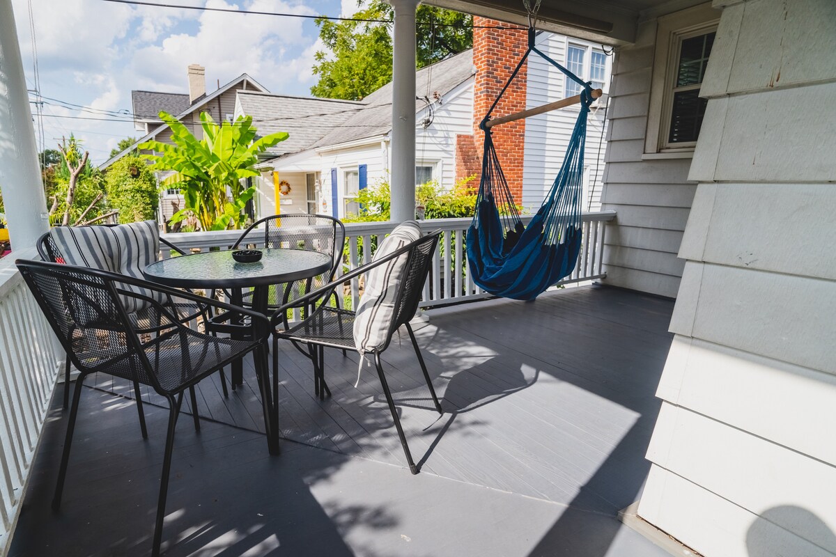 2 BR bungalov u istorijskom okrugu Ardmor, 8 minuta hoda do bolnice Wake Forest i pogodno se nalazi 5 minuta od Starbaksa, Whole Foods-a i Publixa. Mali psi koji se lepo ponašaju su dobrodošli uz prethodno odobrenje. To je takođe kratka šetnja do kafića Ardmore, sladoleda, paba Karlisles, Arturovog restorana, poznatih PB-ovih hot dogova i hamburgera, namirnica. Nudimo posebne mesečne cene za svakoga ko boravi 30 ili više dana za 2750 USD mesečno. Pošaljite nam poruku ako želite da iznajmljujete smještaj na mjesec dana ili duže