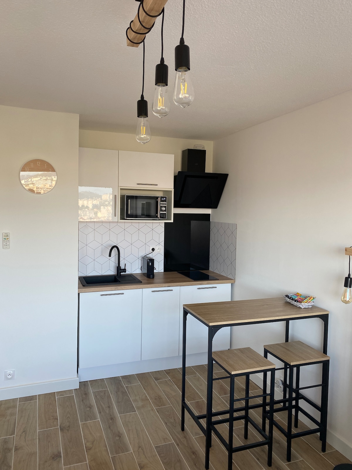 Nica 30 m2 T1 + 15m2 mezanina. Šarm starog renoviranog, u srcu okruga Kamas, atmosfere koja je i živahna i prikladna za porodice. Vrlo centralno i sve što vam treba u susjedstvu: restorani, barovi, prodavnice, perionica veša, pekara. Tramvaj udaljen 20 metara i direktan pristup okrugu Noailles iznad Stare luke i Gare de la Blancarde. Prostor za spavanje sa bračnim krevetom na međuspratu. Zasebna kuhinja, rerna, mikrotalasna rerna, kuvalo za vodu, aparat za kafu
