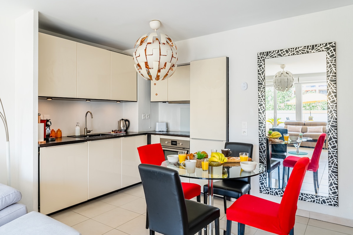 DEZINFEKCIJA NAKON SVAKOG GOSTA. Udaljen je 5 minuta vožnje tramvajem od trske i stare luke, plaža je udaljena 10 minuta vožnje, a palata Lončamp udaljena je 8 minuta hoda. Sve prodavnice, METRO i TRAMVAJ su u blizini, a bioskop je udaljen 5 minuta. Za vaše večeri, Cours Julien sa svojim restoranima, pabovima i diskotekama udaljen je samo 10 minuta hoda ili 3 minute vožnje tramvajem. Možete da uživate i na terasi s pogledom na privatni vrt rezidencije.