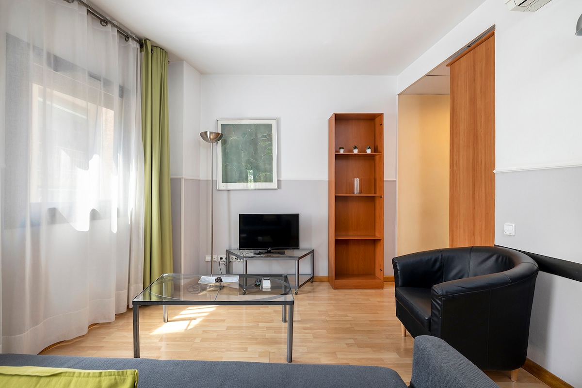 Elegantan jednosoban, jednosoban stan u veoma centralnom delu oblasti Sant Antoni, idealan za do četiri osobe. Spavaća soba ima bračni krevet (širine 125-149 cm), a u dnevnom boravku postoji bračni krevet (širine 125-149 cm) koji može da spava još dve osobe. Kombinira parketne podove i moderan dekor i puna je prirodnog svetla. Stan ima trpezariju sa velikim stolom, koji se nalazi u blizini kuhinje.