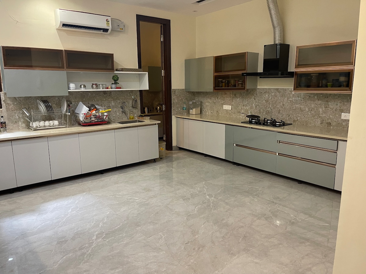 Otkrijte prefinjenu udobnost u ovom svetlom i prozračnom utočištu u Sektoru 70, Mohali, koje se nalazi na trećem spratu (pristup stepenicama) – savršeno mesto za odmor za putnike koji putuju u Manali Šimla Kufri / Daramšalu Uživajte u privatnom Full HD projektoru za prijatne filmske večeri. Najbolja lokacija: • 25 minuta do aerodroma Čandigar, železničke stanice i autobuske stanice • 15 minuta do bolnica Fortis, Sohana i Ivy • 5 minuta do CP67 i šetališta Džubili U blizini tržnog centra Elante, Ružičnjaka, Kamene bašte i jezera Sukna. Mirno, bezbedno i dobro povezano.