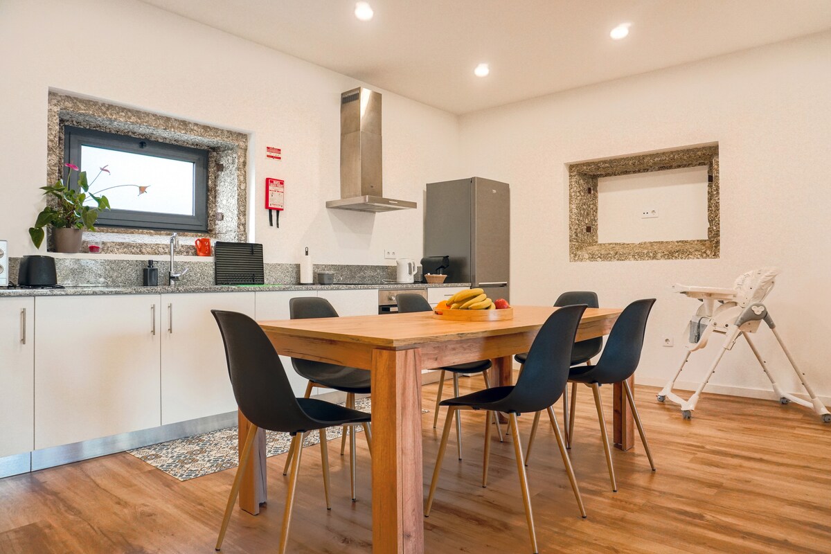 Casa com 3 quartos (1 cama Queen-size cada), 2 casas-de-banho (1 delas suite), cozinha totalmente equipada e zona de lazer exterior com piscina. Grande destaque desta casa é ambiente campestre, o espaço exterior, e a localização, um local sereno às portas da cidade de Braga e a caminho do Gerês. Ideal para casais e famílias onde pode dormir aconchegado pelo cheiro a madeira e som da natureza envolvente. As suas crianças e os seus animais dispõe de espaço livre para correr e brincar na natureza.