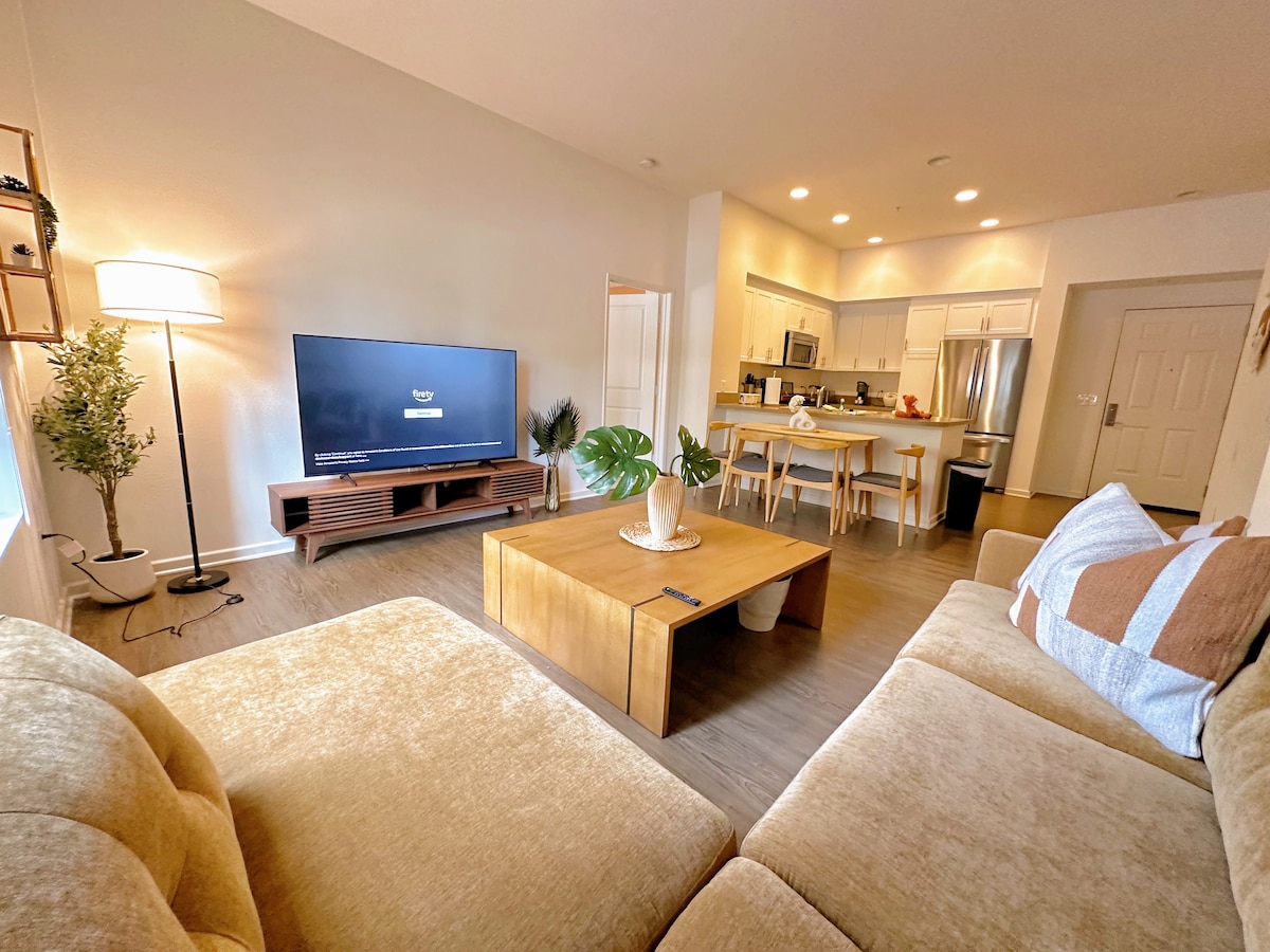 Moderno čudo sa nadograđenim uređajima od nerđajućeg čelika. Luksuzni kompleks luksuznih smještaja. Otprilike 925 kvadratnih stopa. VELIKI BRAČNI krevet u Kaliforniji. Pametni TV od 55inča u spavaćoj sobi. Pametni TV od 65inča u dnevnoj sobi. Možete da se prijavite na svoje lične aplikacije za pametni TV. Privatno unutrašnje dvorište sa stolom i dve stolice. U mašini za pranje/sušenje veša (deterdžent). Savršeno za porodični ili parovski odmor, poslovno putovanje ili duži boravak. Uvijek čist i spreman kada stignete. Odlična lokacija u Irvajnu u blizini autoputa 405. Postavite nam pitanja.