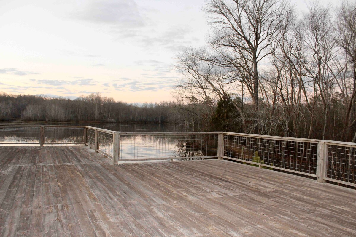 You'll love waking up in this peaceful lakefront Airbnb. 2 large flat TVs, 2 acres of lawn leading to fishing from the dock and boathouse on Lake Sinclair in Milledgeville, GA. Shopping and restaurants nearby. This is such a special place! We've left you fishing poles, our guests catch fish, often off our dock. Bring a boat or rent one at the Lake Sinclair Marina! Comfortably sleeps 6. 10 min drive to GCSU College.