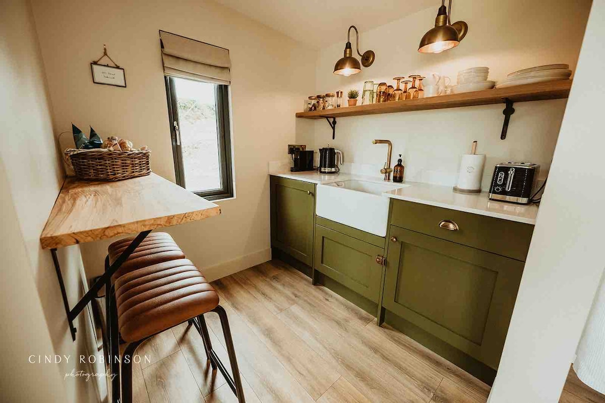 The Surfer’s Shack is a unique tiny space created from an upcycled shipping container. The decor is inspired by the local Causeway coastline. If you’re looking for a quiet secluded getaway, this is the place for you, as the shack is surrounded by rolling county Antrim farmlands, all the while being within minutes of the top spots such as the giants causeway, Carrick-a-rede rope bridge, the dark hedges and the Bushmills distillery. A little further (15 minutes drive) will take you to Portrush.