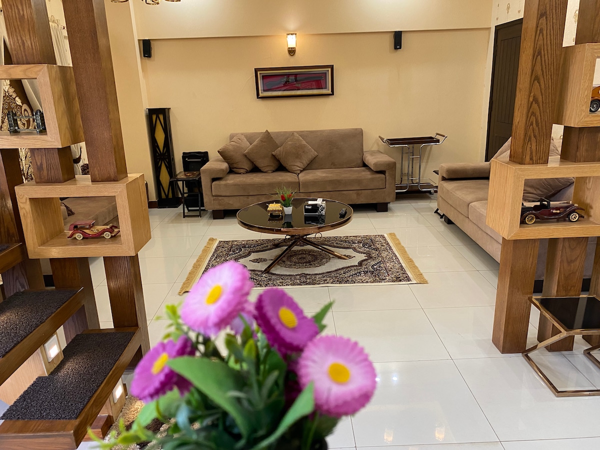 Our apartment offers a comfortable stay in heart of Karachi. A beautiful Decorated perfectly blended. The living room is perfect for relaxation with a sofa and coffee table. You'll find everything you need to cook in the kitchen, including a refrigerator, and basic utensils.The bedroom features a queen-sized bed,1 air conditioning,a TV for entertainment. Enjoy the city views from your private balcony. The bathroom is equipped with essential toiletries. UNMARRIED COUPLES STRICTLY NOT PERMITTED..