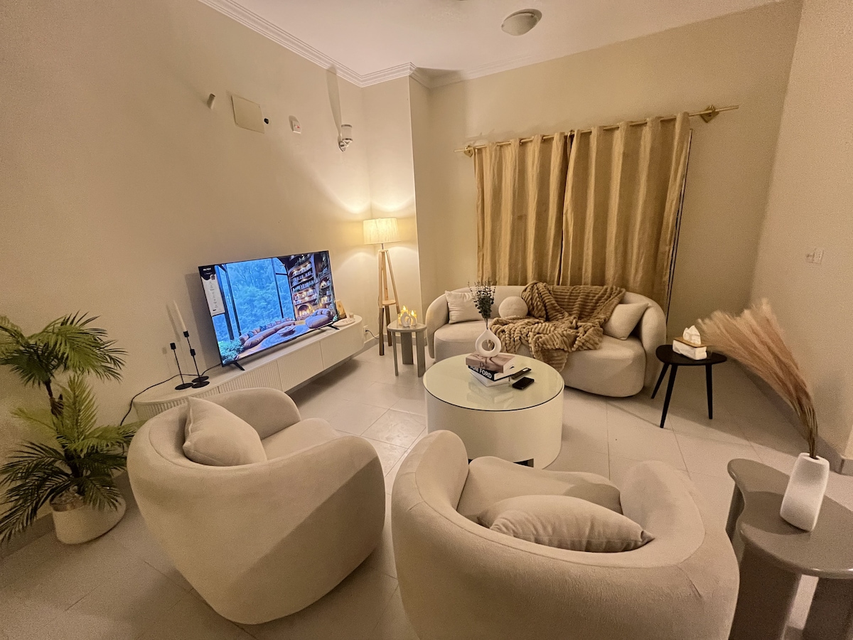 „Dobro došli u svoje udobno utočište u gradu Bahria, Karači” Estetski smještaj za parove ,prijatelje i porodicu Besplatne usluge: Netflix Amazon Osveženje Komunalne usluge u kuhinji Struja ,gas i voda su dostupni non-stop Dodatne usluge uz dodatne naknade: 1:Sobarica 2:Automobil sa vozačem 3:Kućni kuvar 4:Sluga za spoljne radove Ostale napomene imajte na umu nivo buke i suzdržite se od glasnog puštanja muzike kako biste svima osigurali mirno okruženje. Uživajte u boravku.